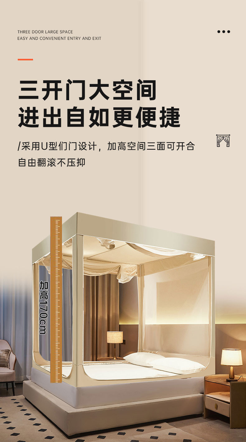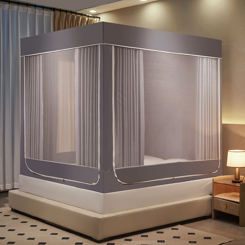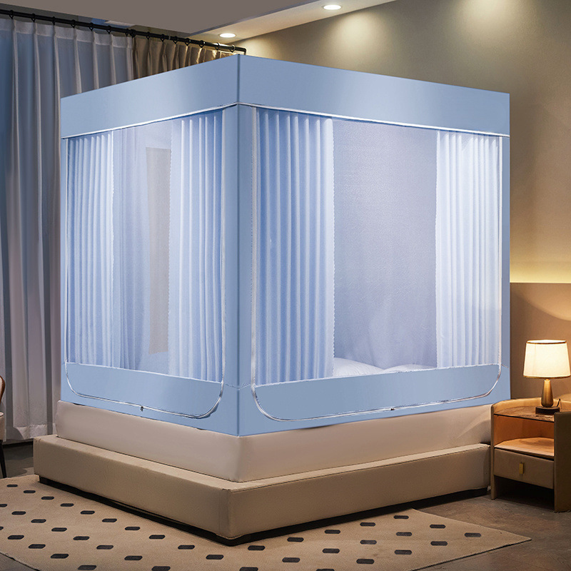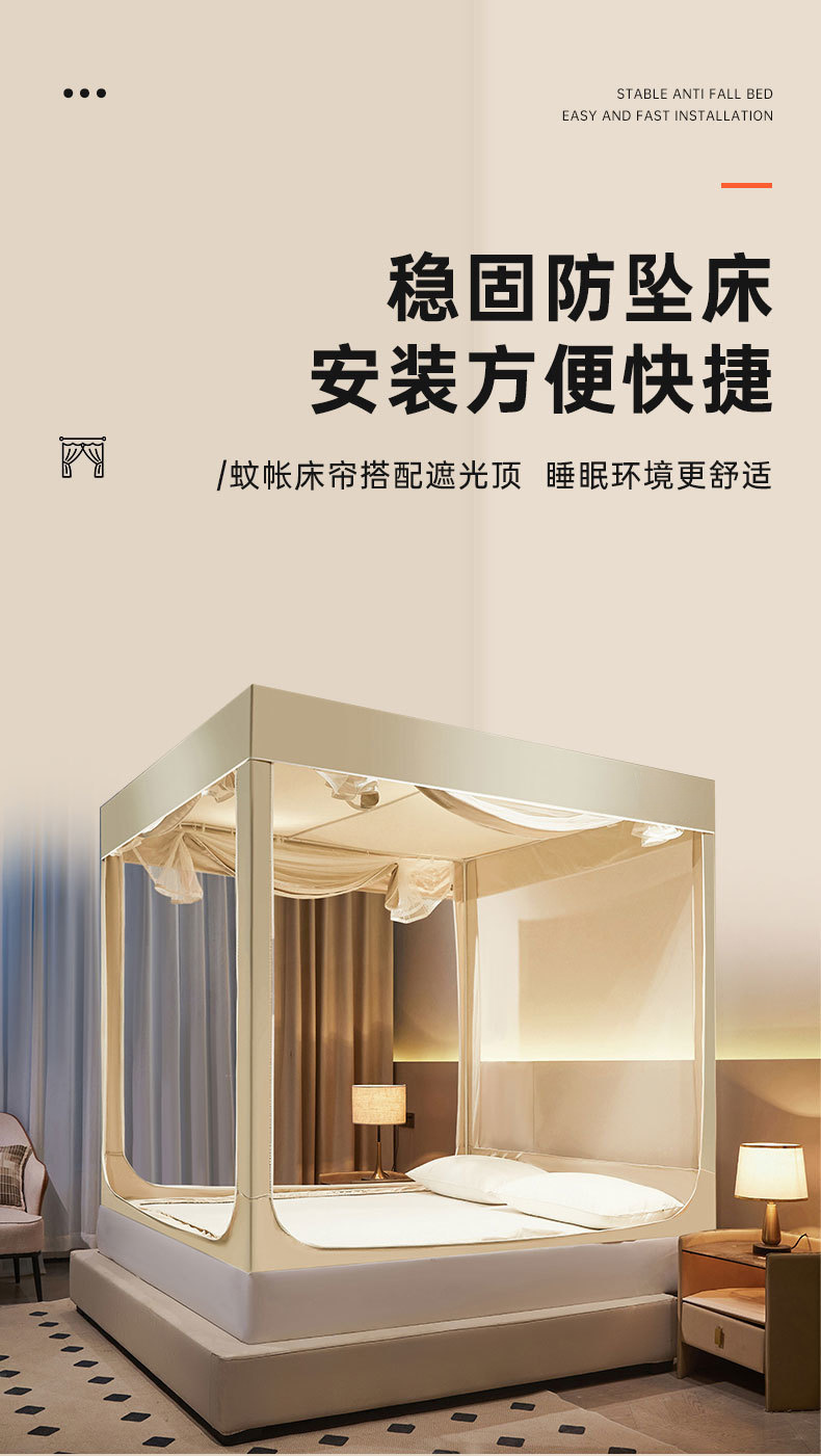 2025 새로운 스타일의 침대 쉐이딩 모기장 침대 커튼 일체형 가정용 어린이 아기 지퍼 3 도어 방진 및 두꺼운스토어 가기