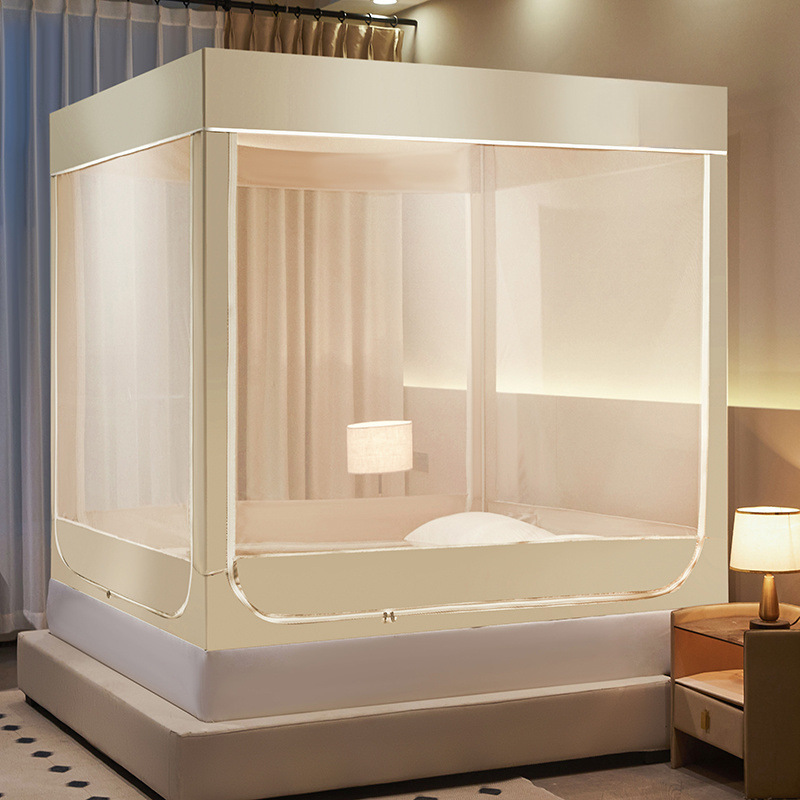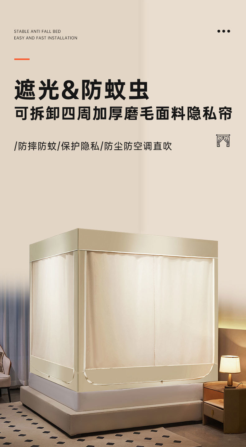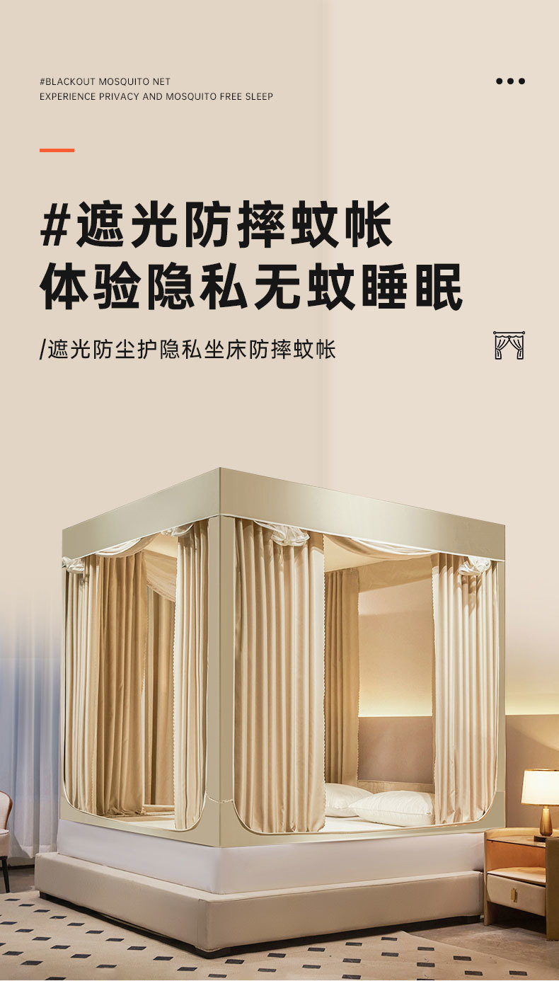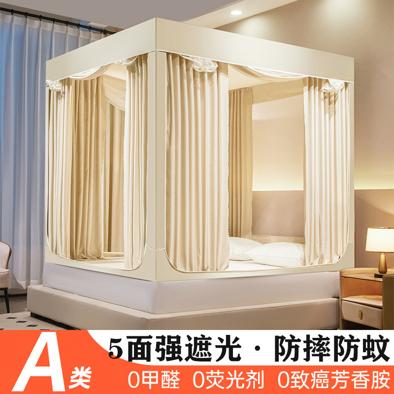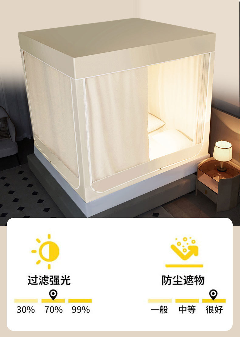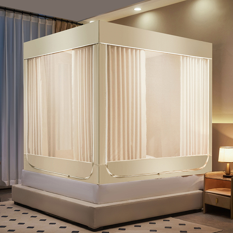 • 암막커튼[샴페인색] 모기장 + 침대커튼 + 두꺼워진 무접합 브라켓 포함