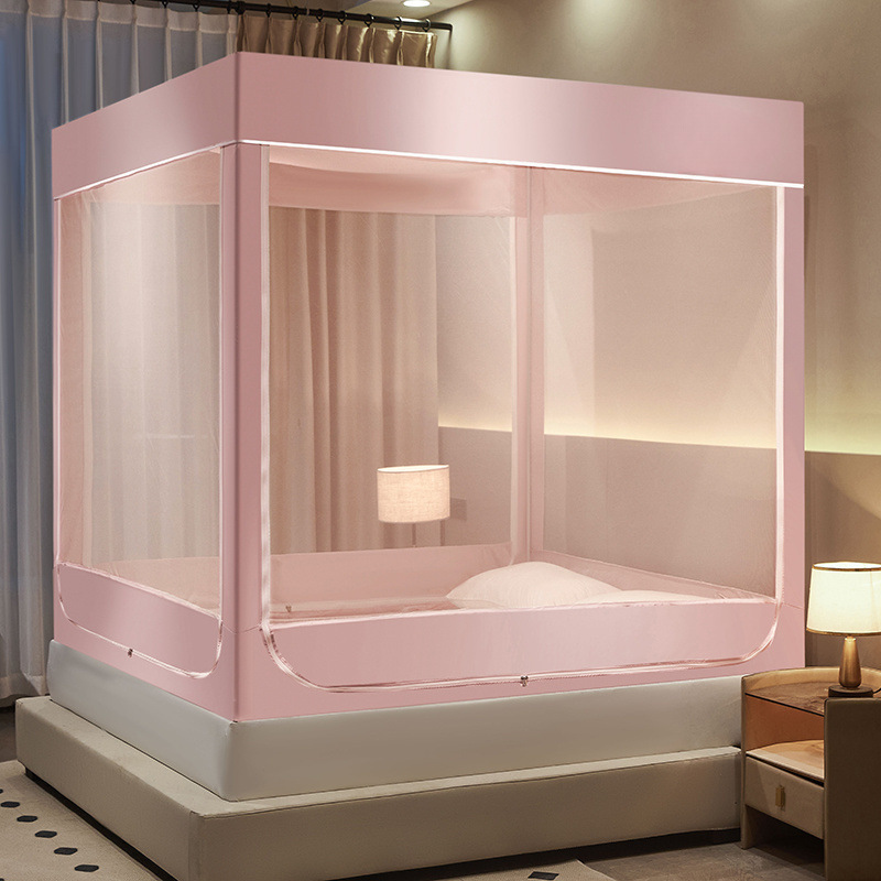 • 암막커튼[라이트핑크] 모기장 + 침대커튼 + 두꺼워진 무접합 브라켓 포함