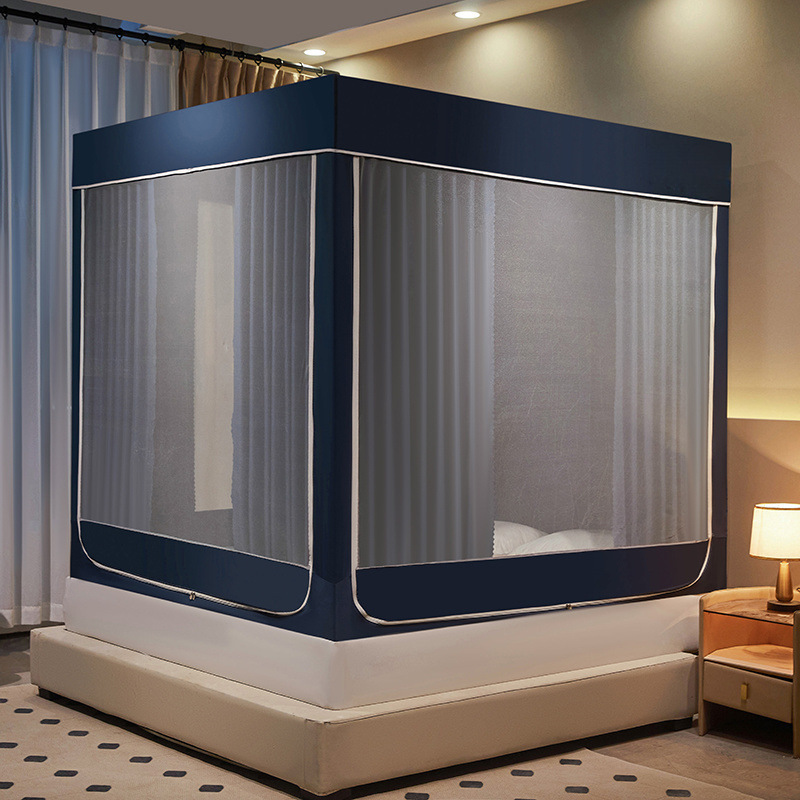• 암막커튼[네이비블루] 모기장 + 침대커튼 + 두꺼워진 무접합 브라켓 포함