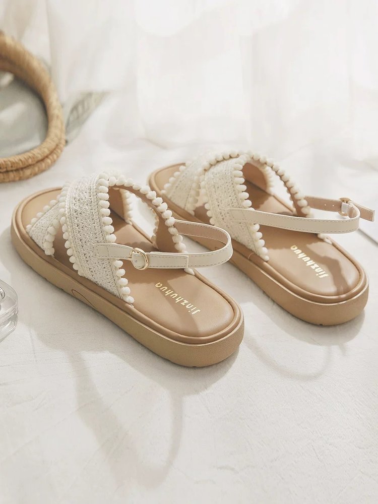 부드러운 가죽 버전 ~ 스커트와 함께 신으면 발이 피곤하지 않고 아름다운 플랫 바닥, 여름 아우터용 여성용 프렌치 샌들 2025 새로운 스타일