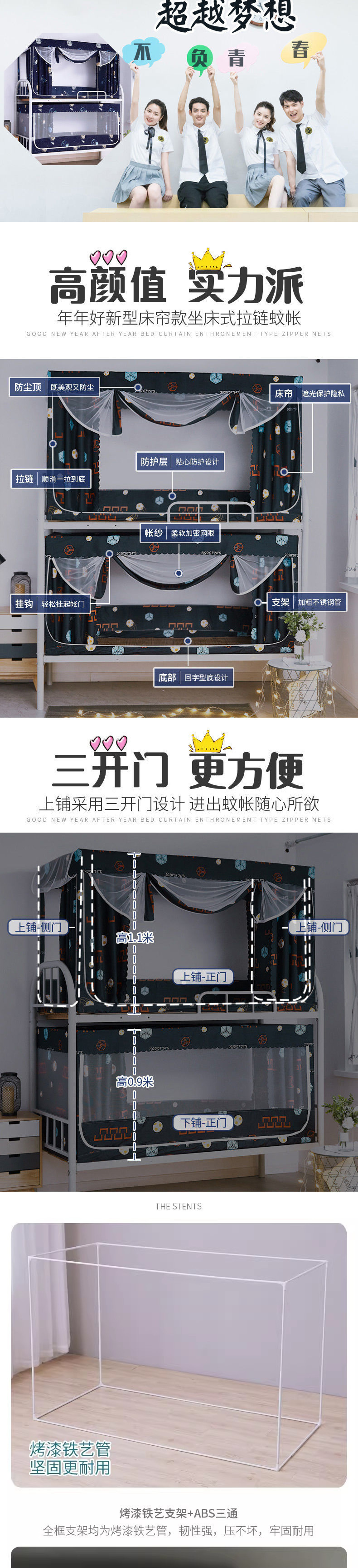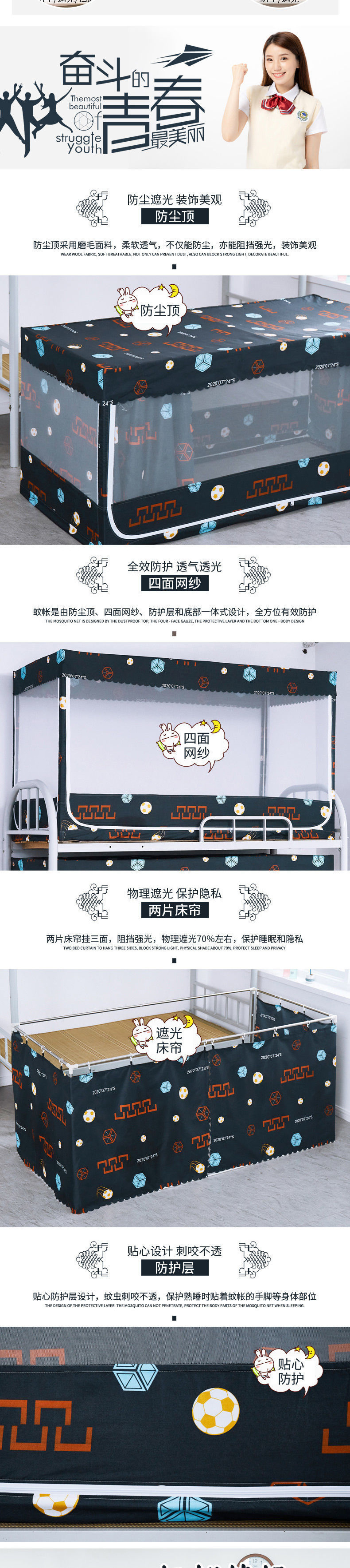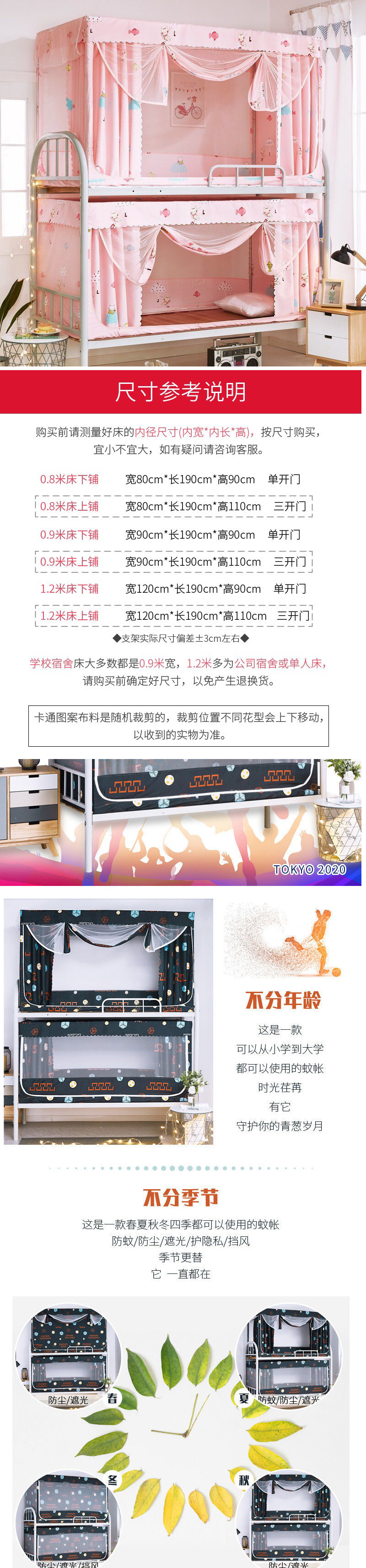 올해도 좋은 학생 기숙사 모기장과 침대 커튼이 일체형으로 빛을 차단하는 이층 침대와 하단 침대, 싱글 침대와 이층 침대