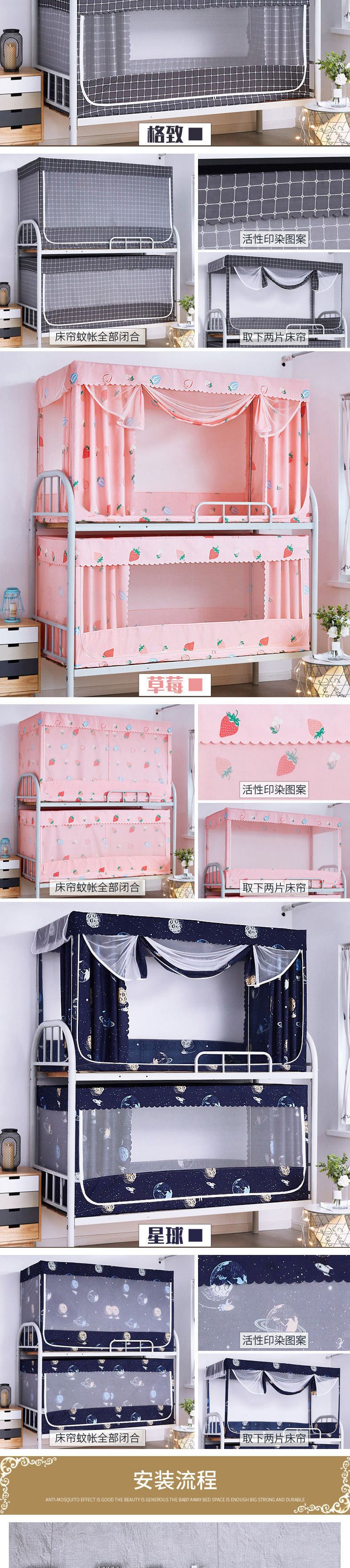 올해도 좋은 학생 기숙사 모기장과 침대 커튼이 일체형으로 빛을 차단하는 이층 침대와 하단 침대, 싱글 침대와 이층 침대스토어 가기
