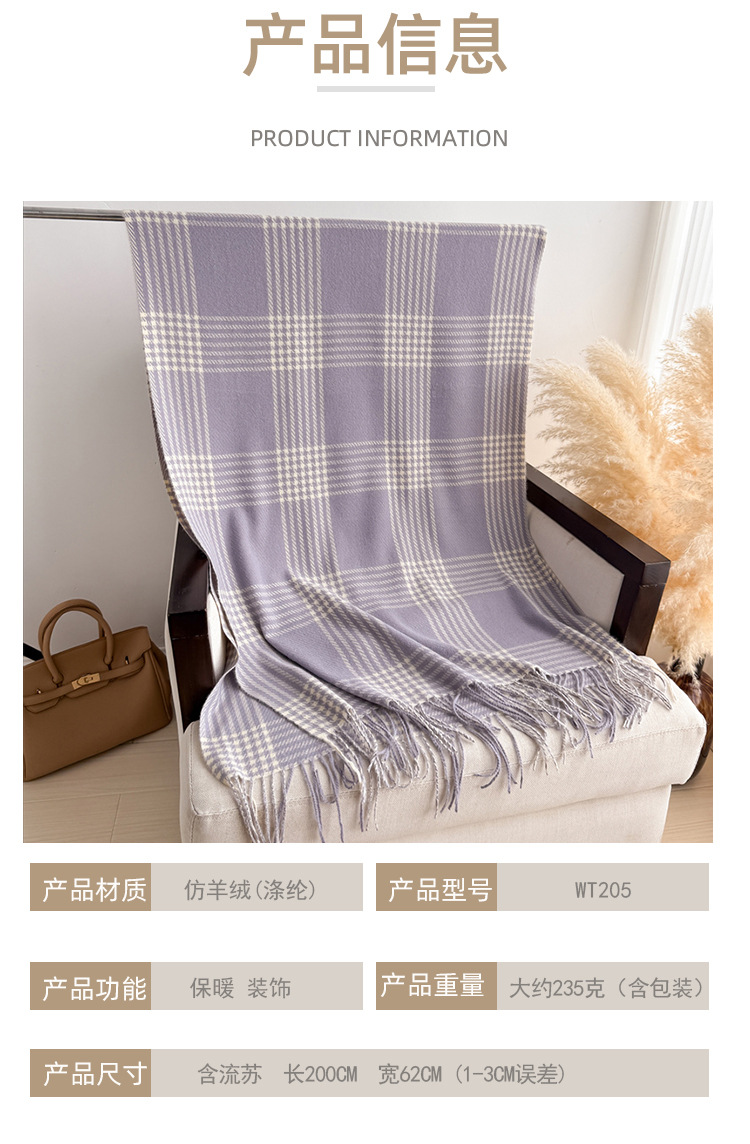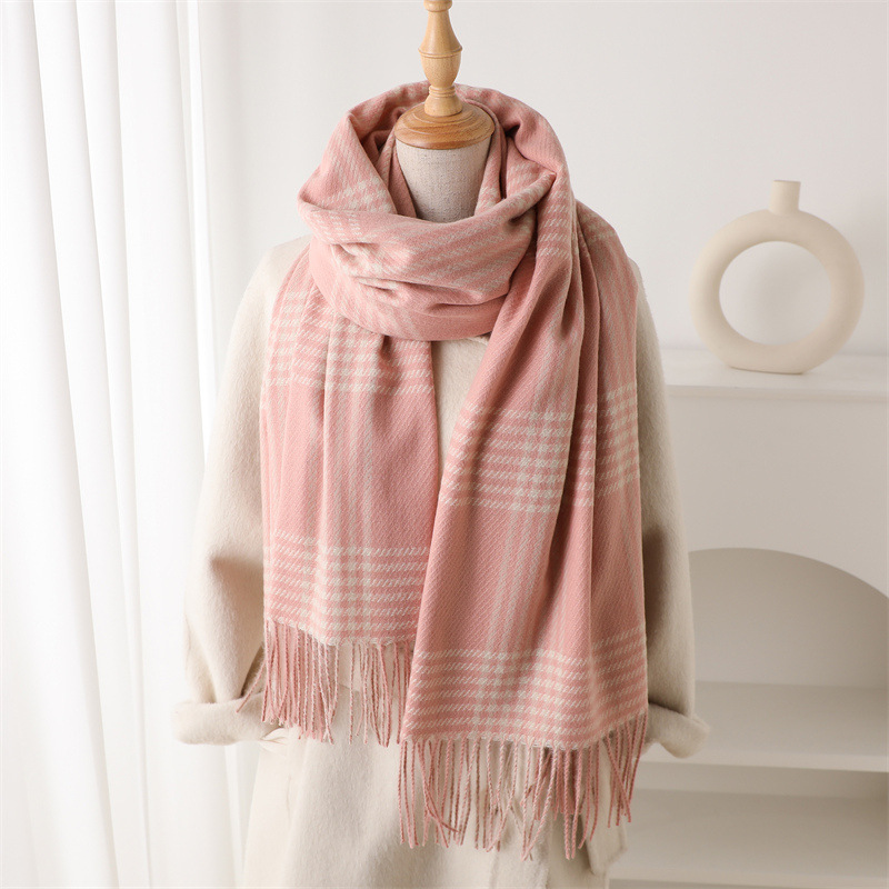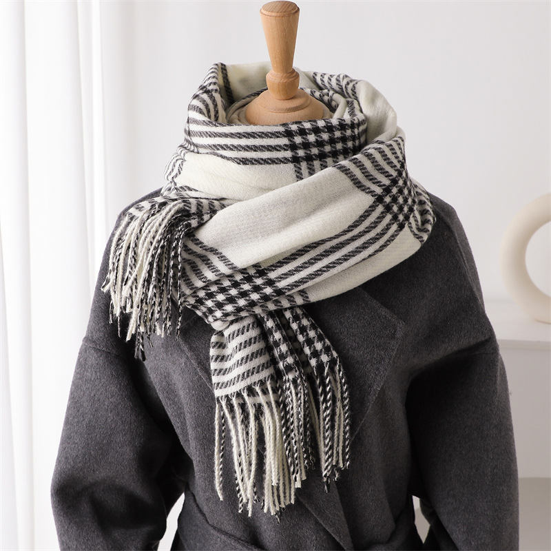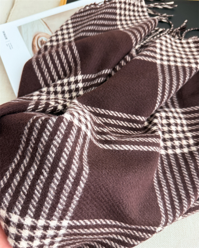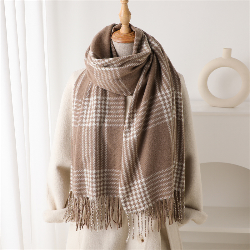 한국식 모조 캐시미어 복고풍 격자 무늬 따뜻한 숄과 스카프로 가을 겨울의 추위를 따뜻하게 유지하고 패셔너블한 분위기를 연출하는 다용도 태슬 스카프스토어 가기