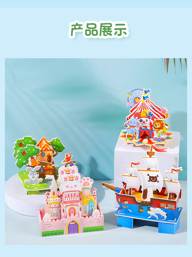 만화 3D 입체 집 퍼즐 어린이 DIY 교육 유아 조기 교육 작은 4 조각 미니 오두막 조립 장난감스토어 가기
