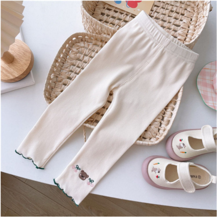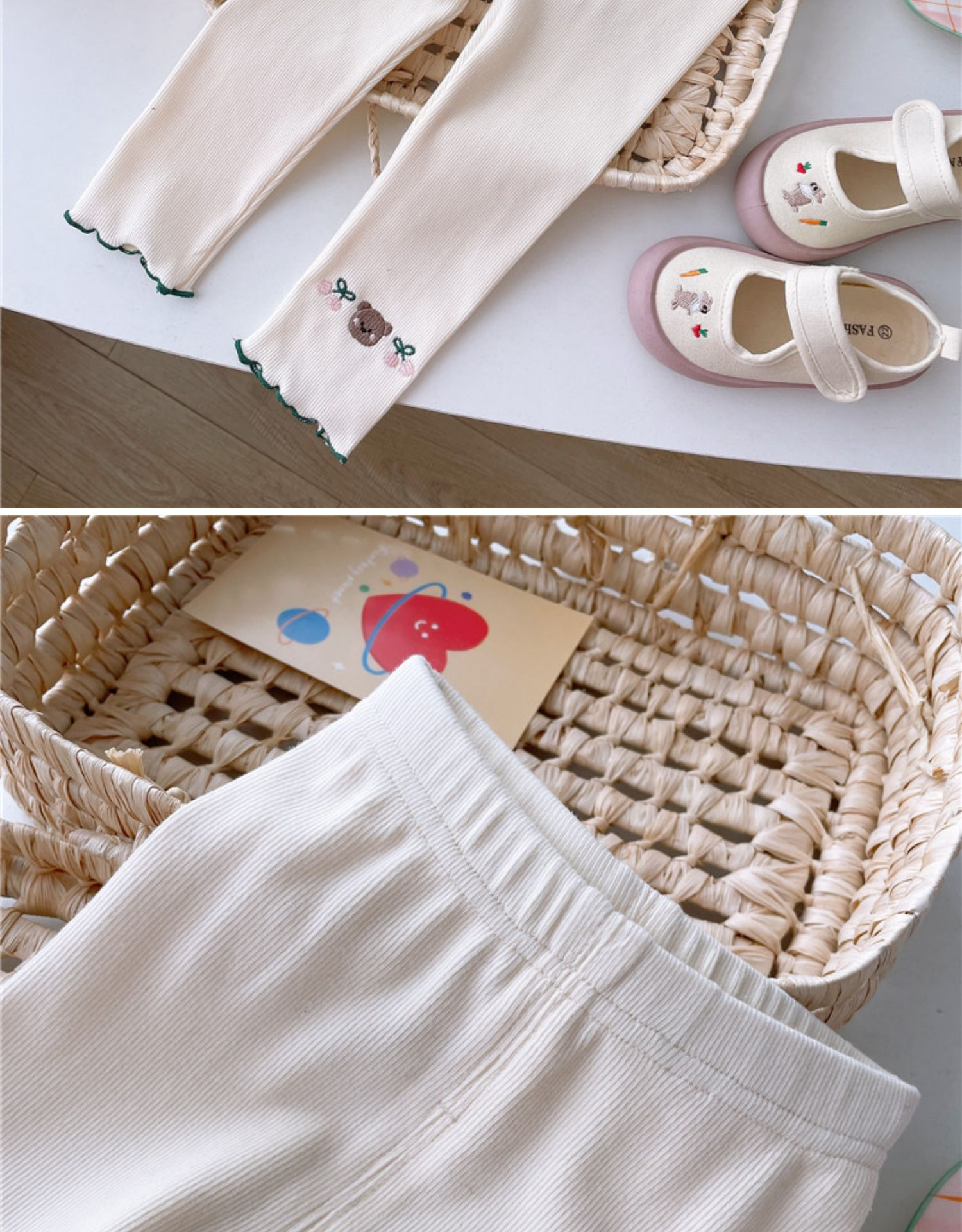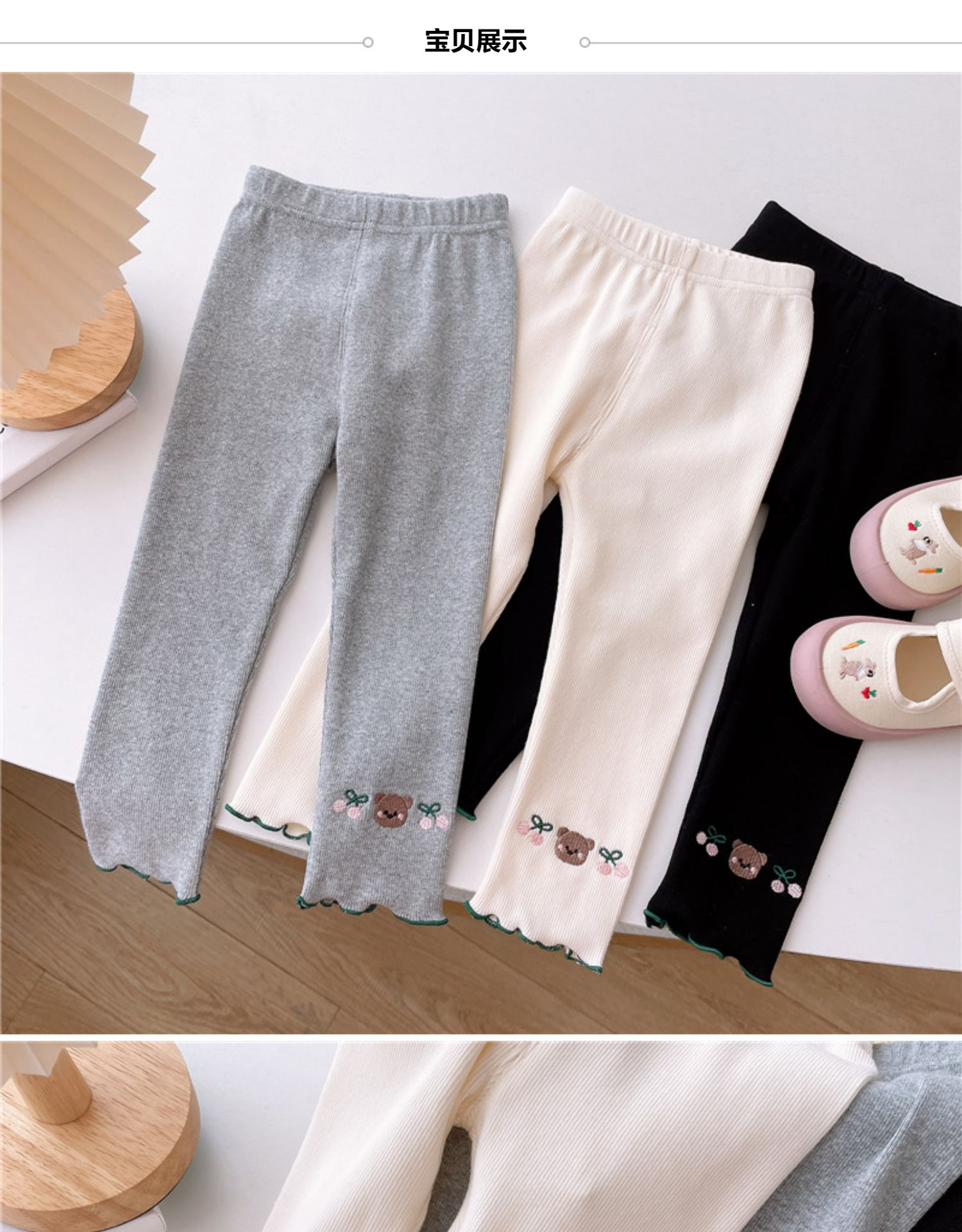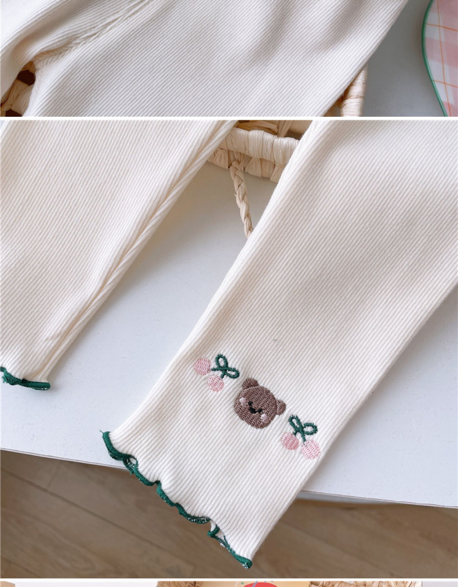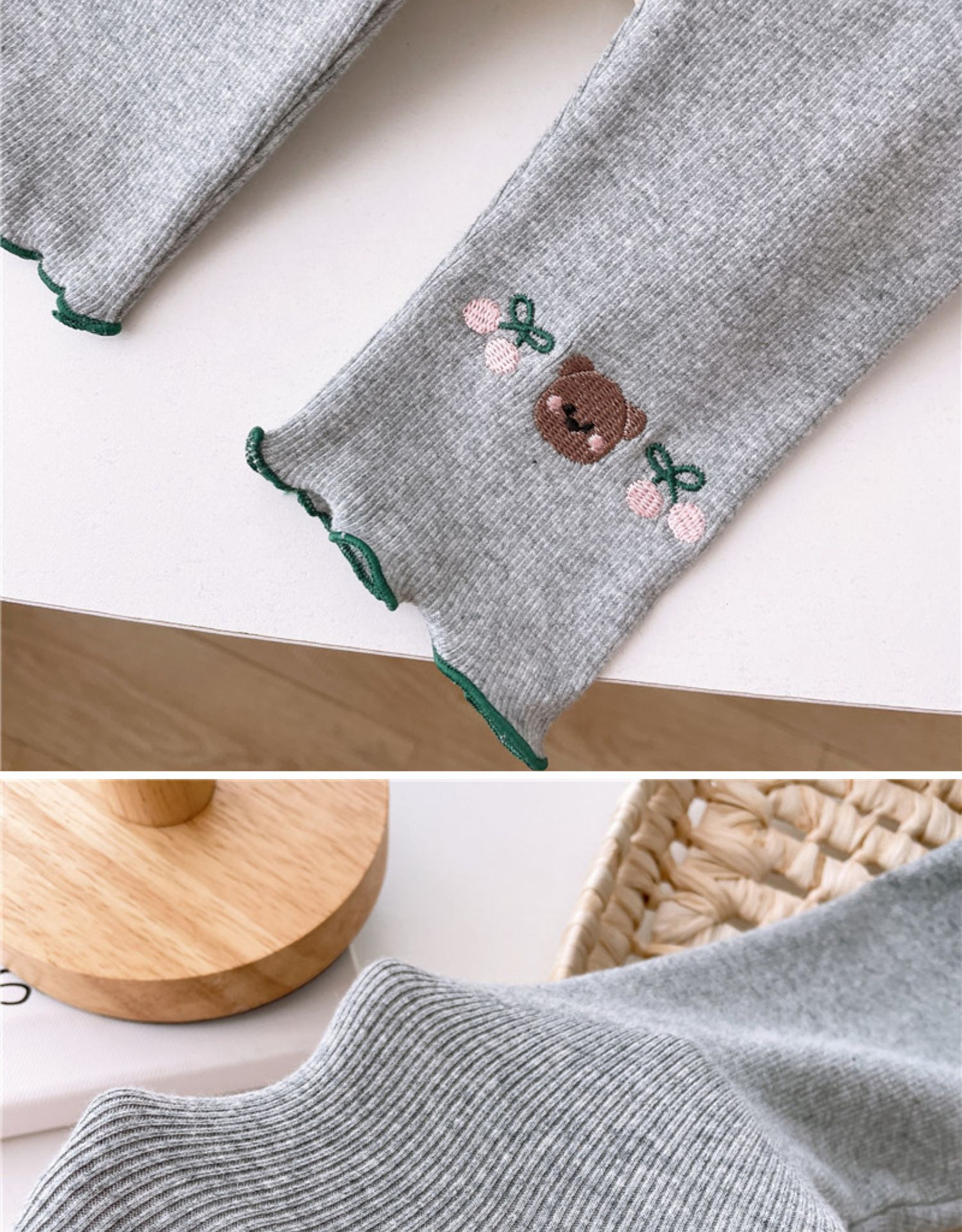 여아용 베어 체리 프린트 레깅스, 패셔너블한 베이비 아우터 팬츠, 중소형 아동용 바지스토어 가기