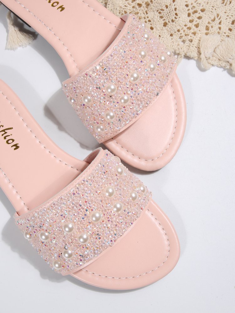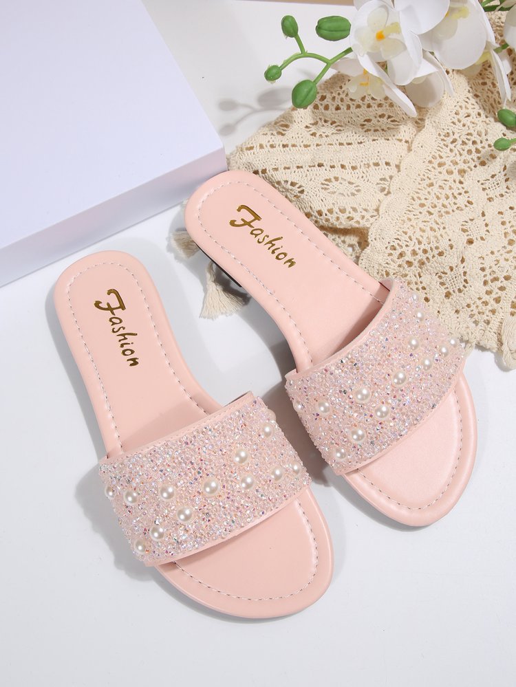 2025 새로운 다용도 진주 스팽글 패션 트렌드 플랫 슬리퍼 대형 캐주얼 슬리퍼