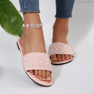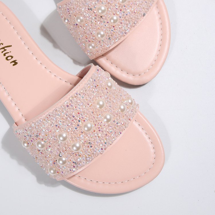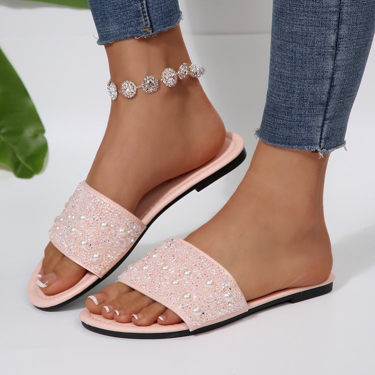 2025 새로운 다용도 진주 스팽글 패션 트렌드 플랫 슬리퍼 대형 캐주얼 슬리퍼스토어 가기