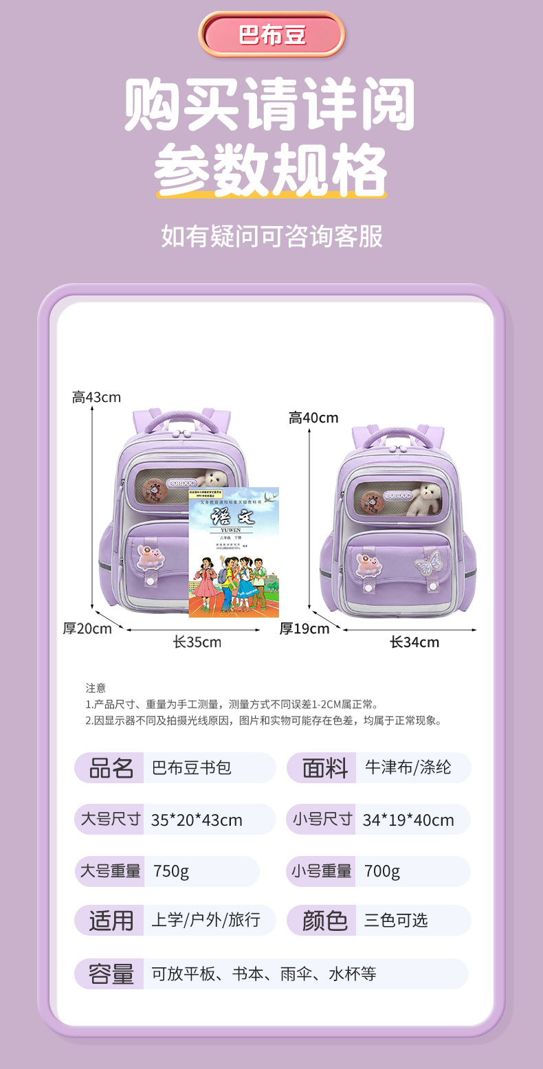 Babudou 어린이 학교 가방 1-6 학년 부담을 줄이는 대용량 배낭 초등학교 가방 DIY 경량 가방 도매