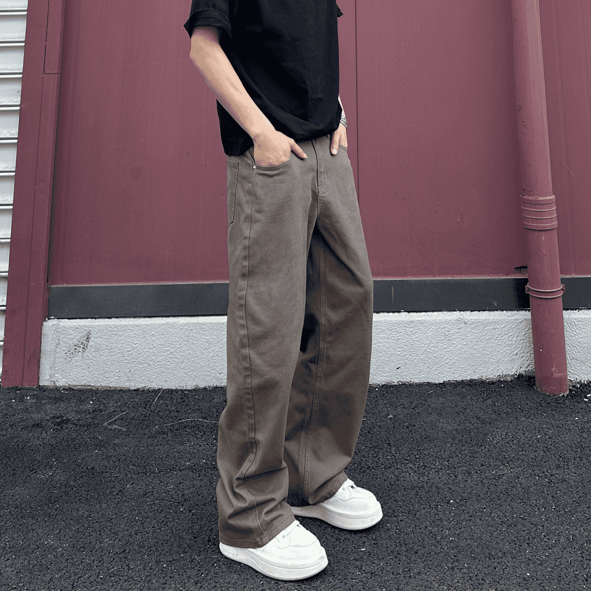아메리칸 레트로 메일라드 브라운 캐주얼 청바지 남성 트렌디 하이 스트리트 바이브 스트레이트 레그 마이크로 플레어 클린핏 스트레이트 레그스토어 가기