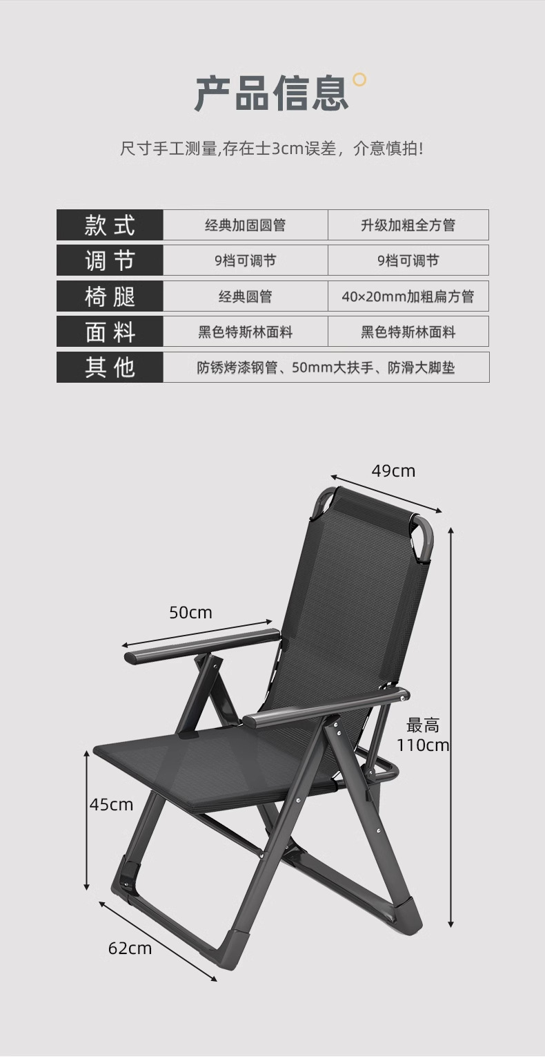 • [평평하게 누울 수 있는 업그레이드된 지지대 + 대형 사각 튜브] 블랙