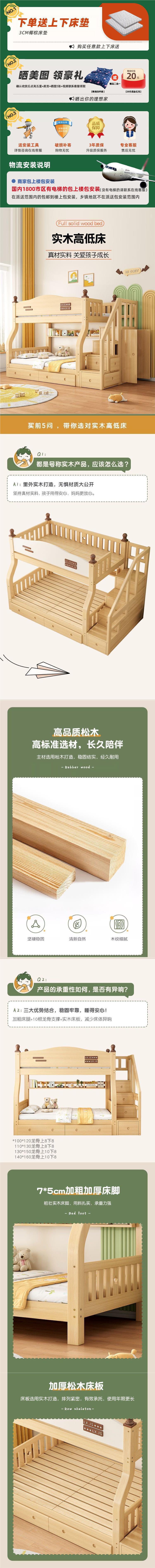 원목 이층침대, 다기능 조합 하이앤로우 침대, 이층침대, 이층침대, 어린이침대스토어 가기