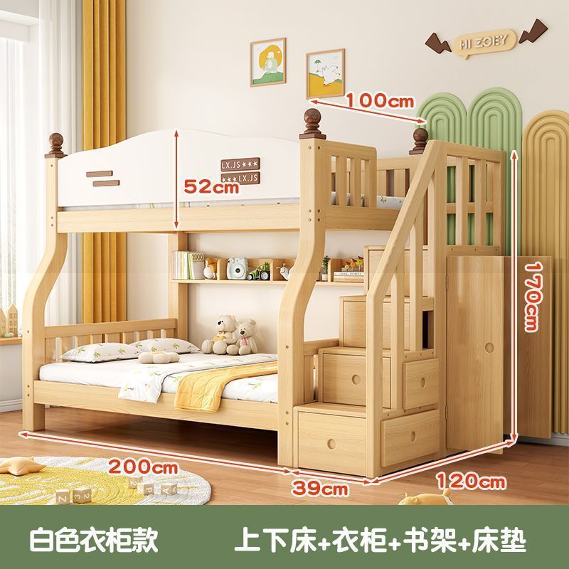 원목 이층침대, 다기능 조합 하이앤로우 침대, 이층침대, 이층침대, 어린이침대