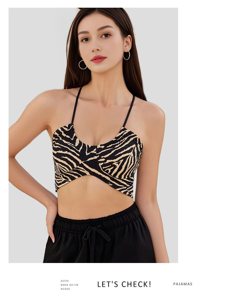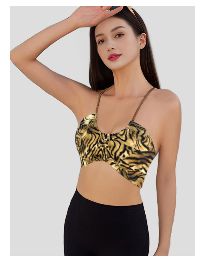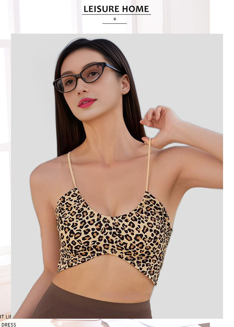 DK 여성용 올인원 얇은 스트랩 스포츠 브라, 여성용 패션 프린트 레오파드 프린트 인터넷 연예인 브라 요가 피트니스 조끼스토어 가기