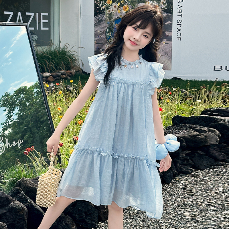 여자 여름 공주 드레스 2025 새로운 여자 달콤한 플라잉 슬리브 드레스 여자 여름 드레스