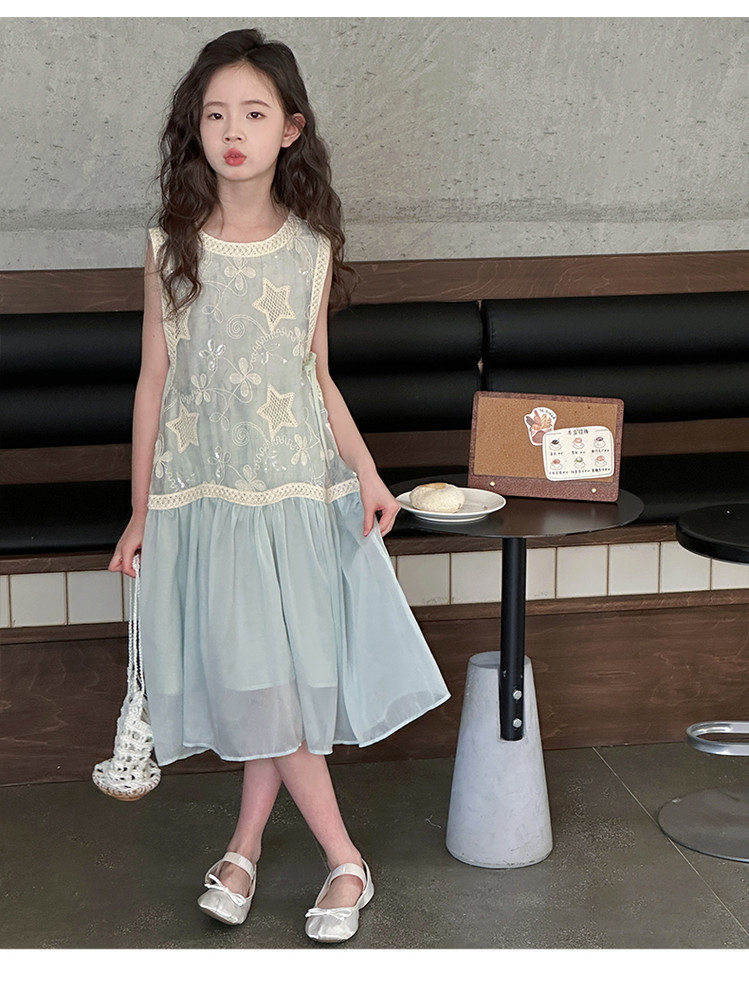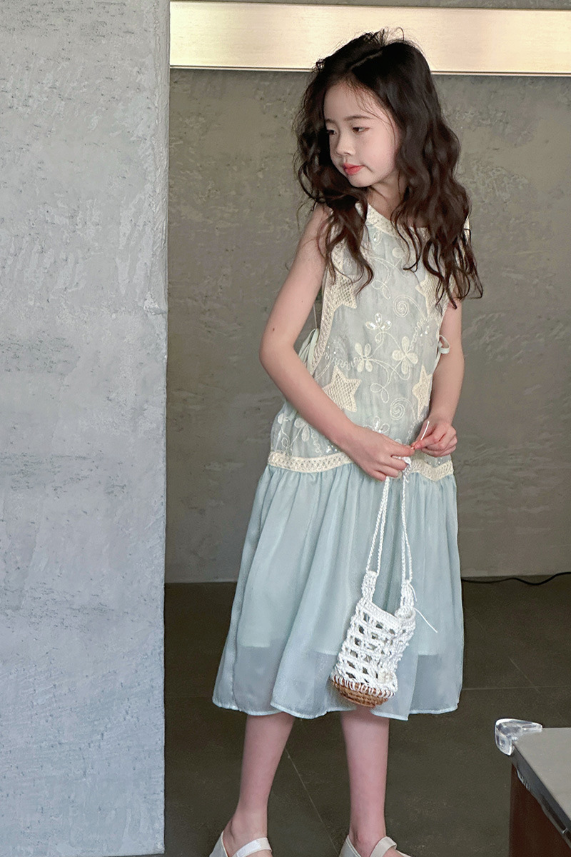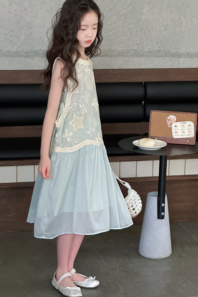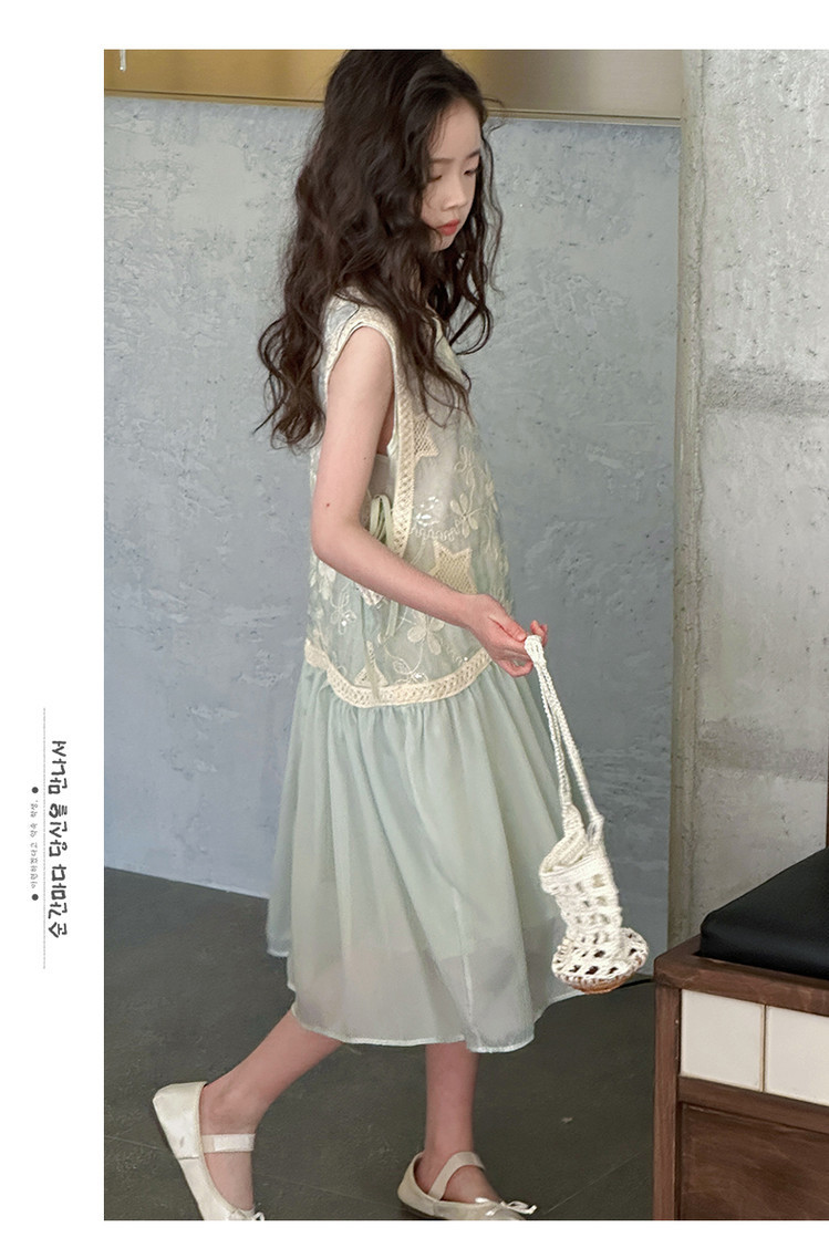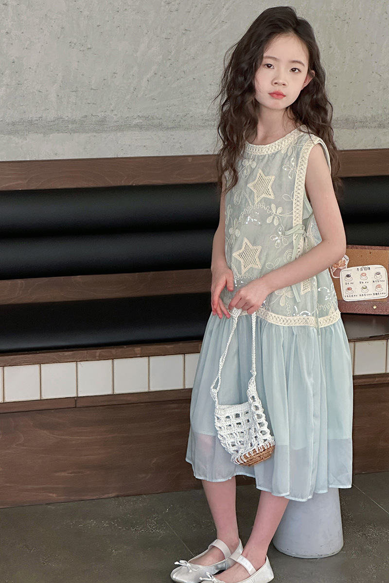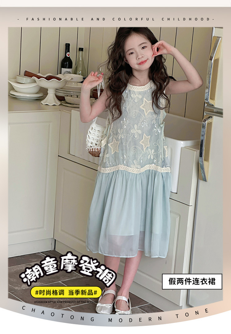 여자 가짜 투피스 드레스 여름 민소매 스플 라이스 조끼 거즈 스커트 여자 달콤한 휴가 스타일 공주 비치 드레스