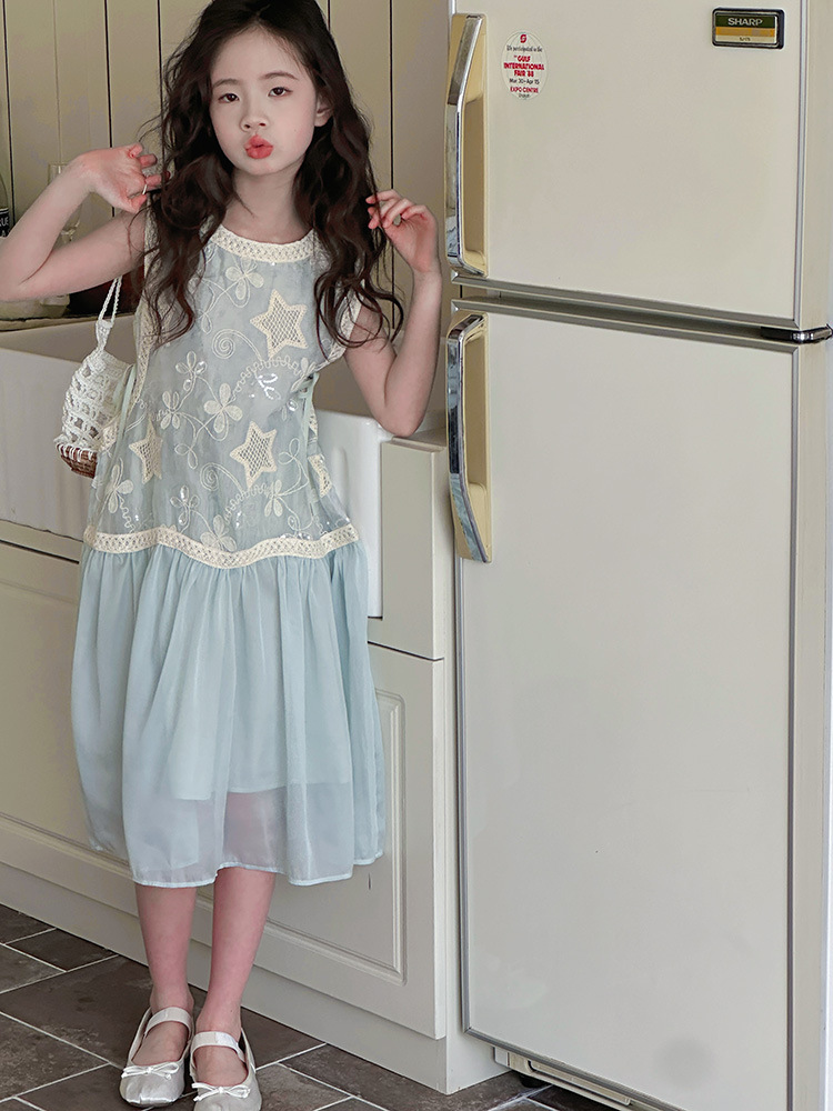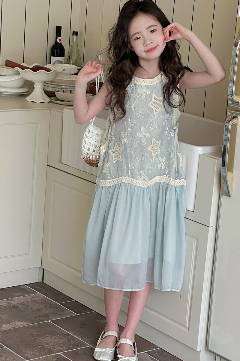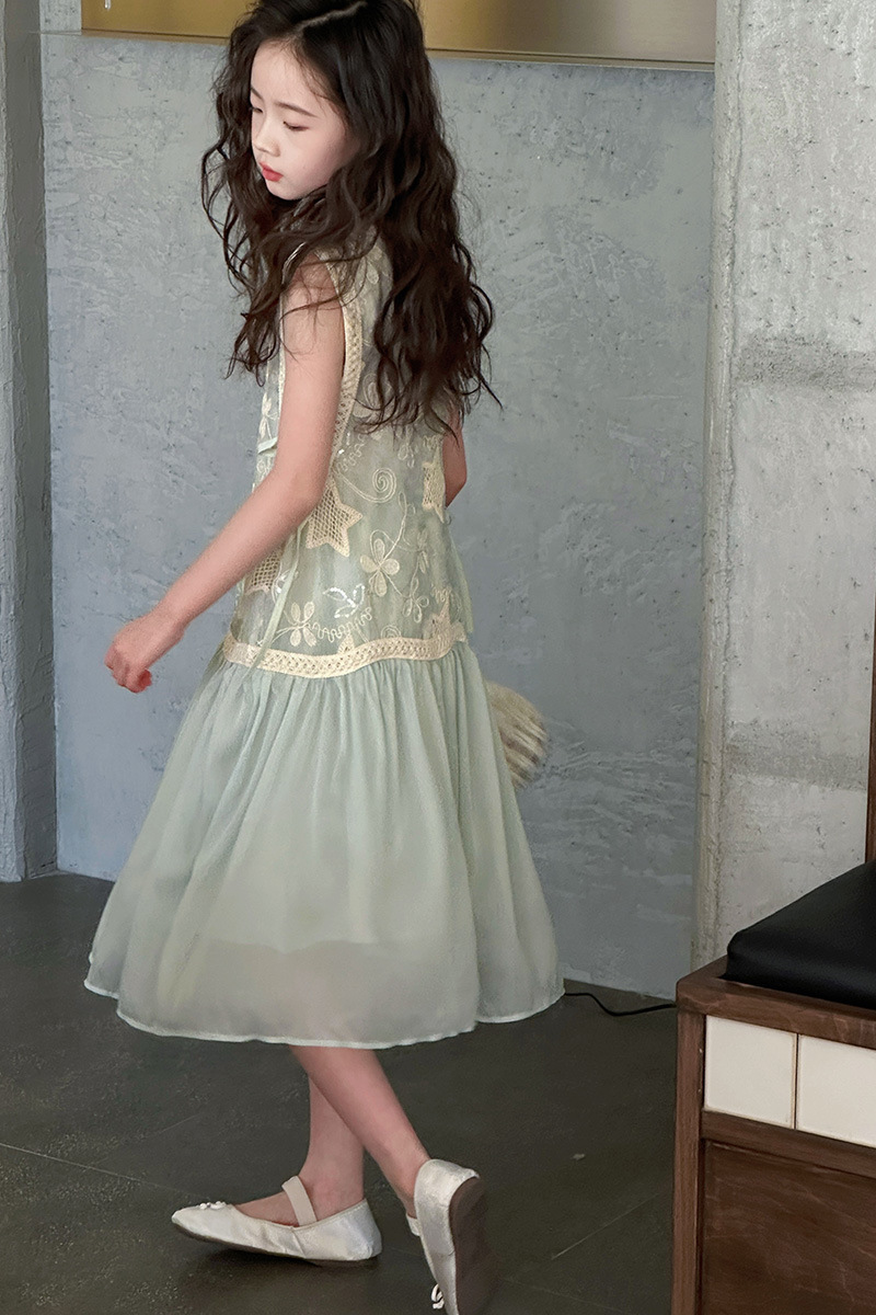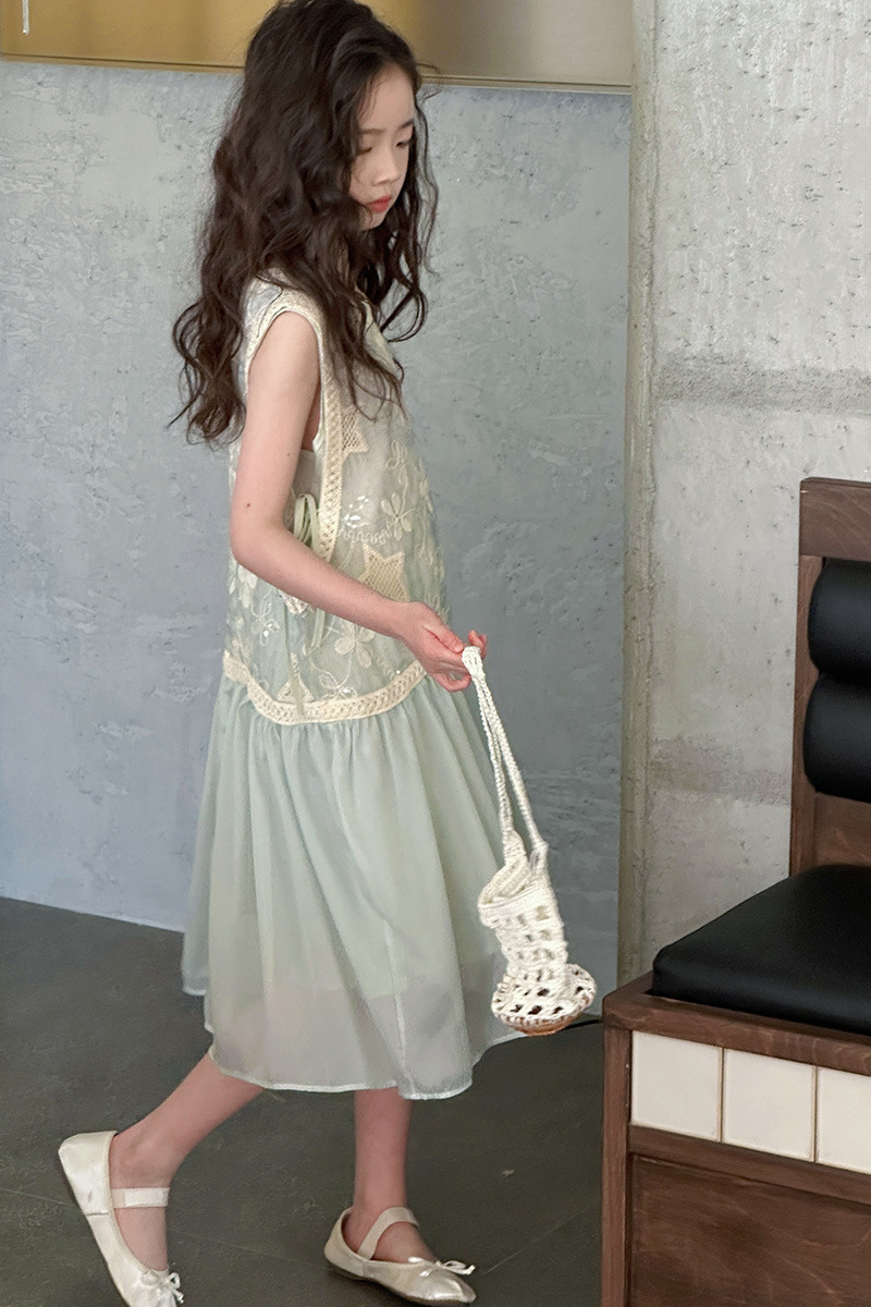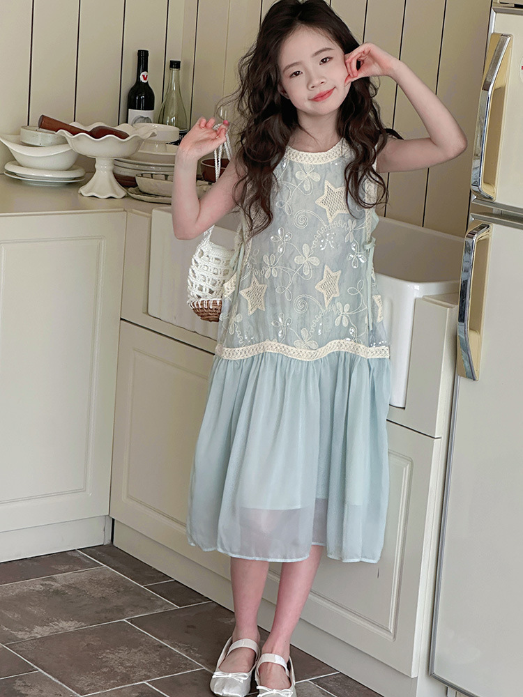 여자 가짜 투피스 드레스 여름 민소매 스플 라이스 조끼 거즈 스커트 여자 달콤한 휴가 스타일 공주 비치 드레스