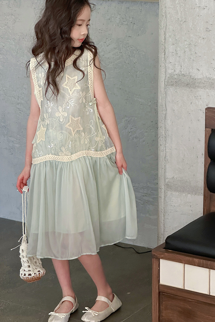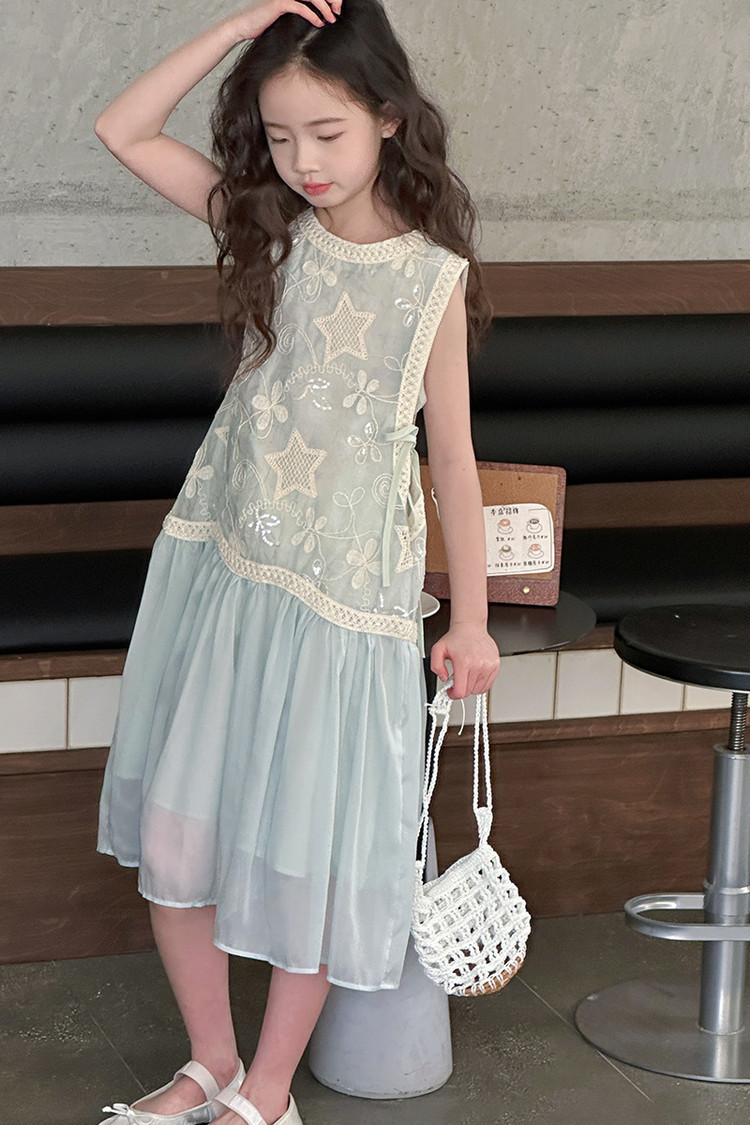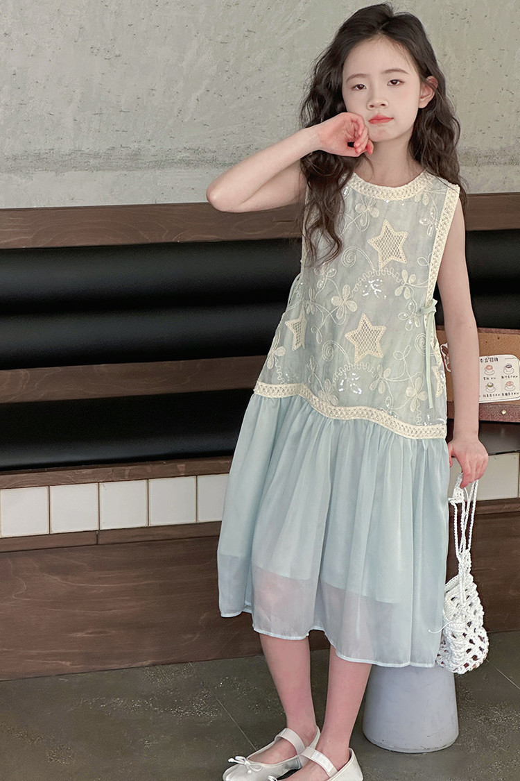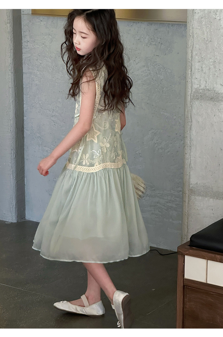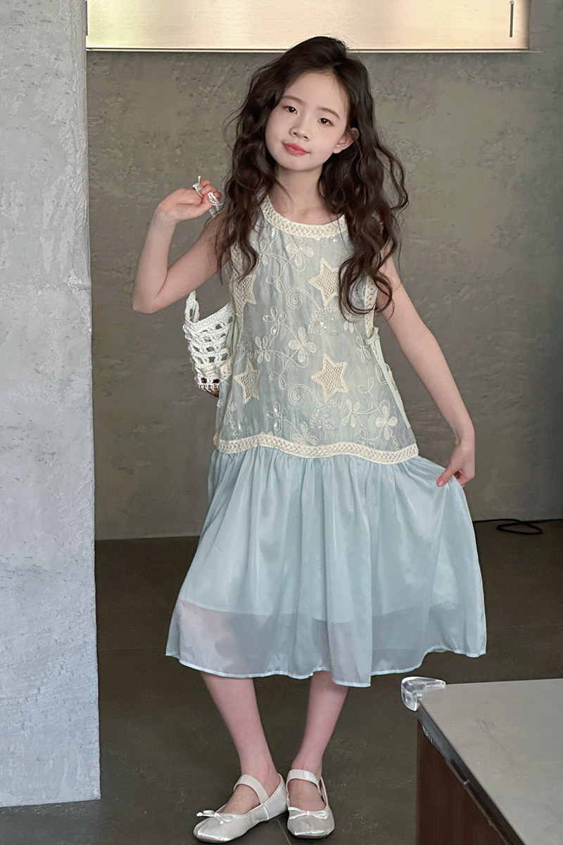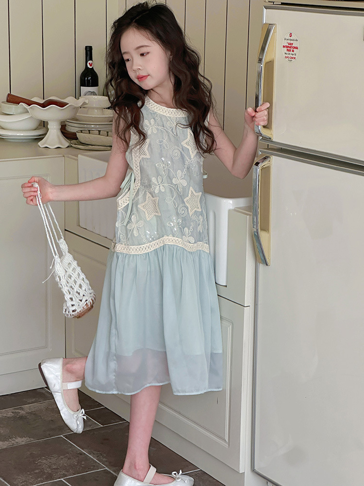 여자 가짜 투피스 드레스 여름 민소매 스플 라이스 조끼 거즈 스커트 여자 달콤한 휴가 스타일 공주 비치 드레스