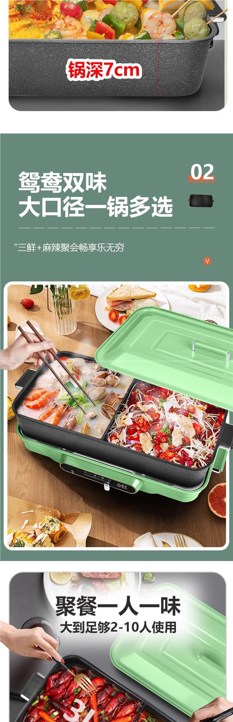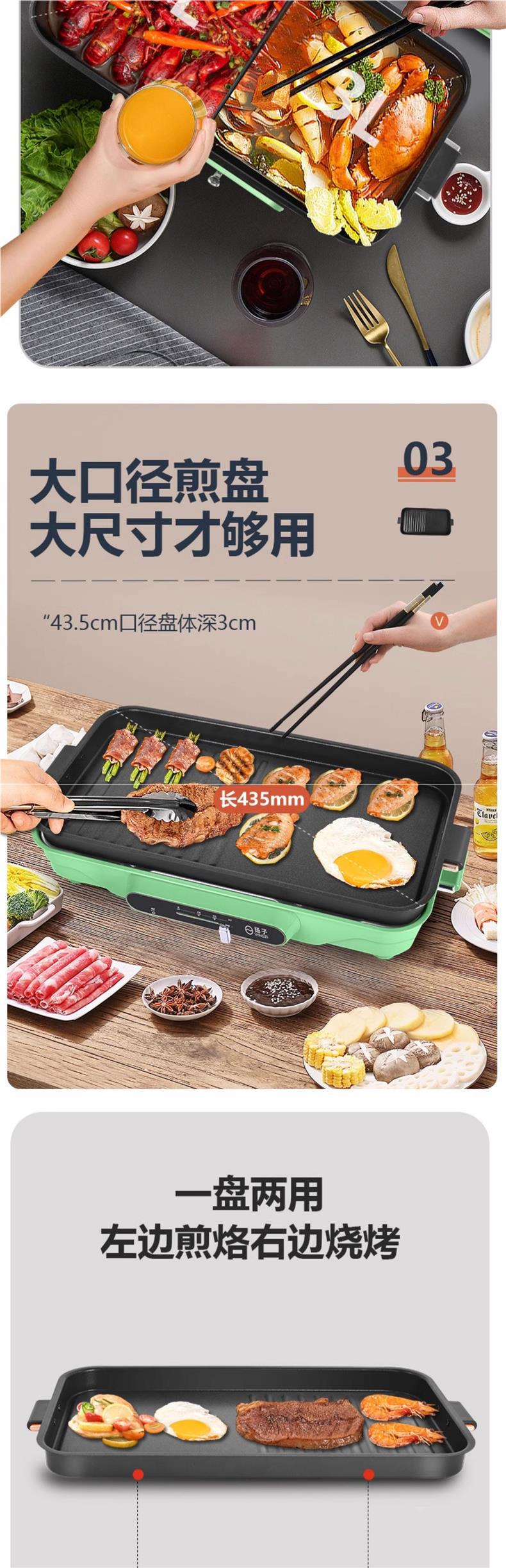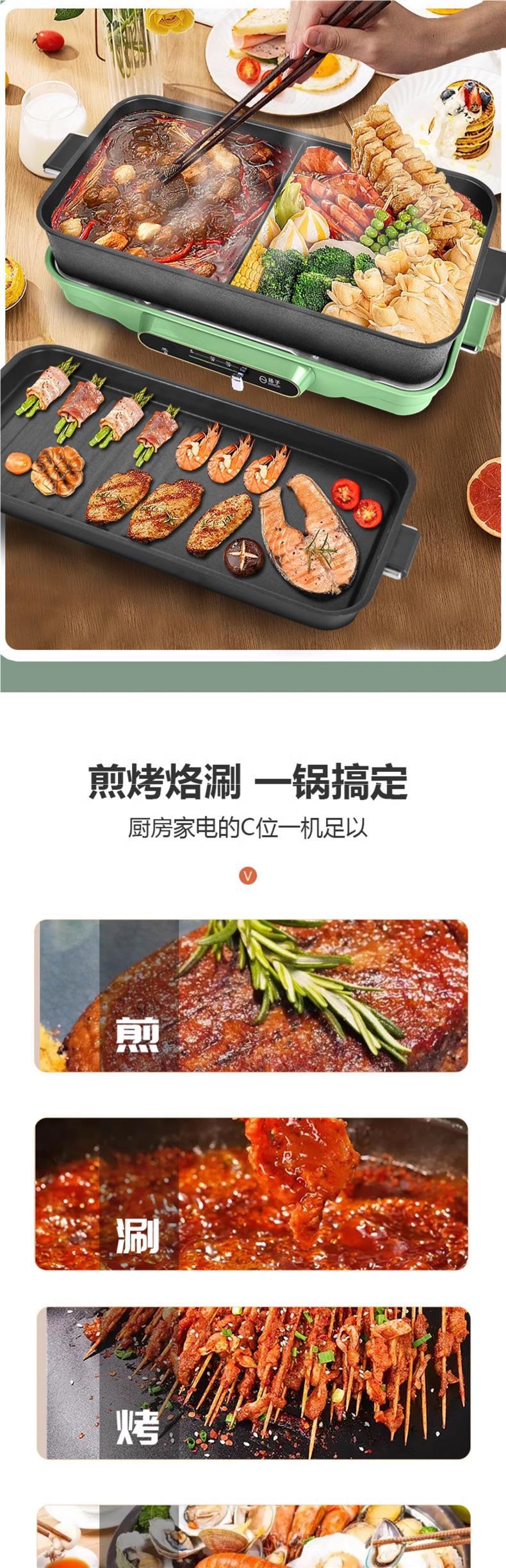 다기능 조리 냄비 가정용 분할 오리 전기 냄비 삶고 튀기고 바베큐 고기 붙지 않는 전기 그릴 팬스토어 가기