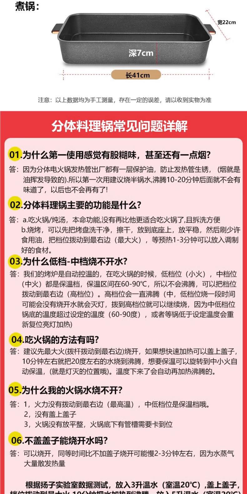 다기능 조리 냄비 가정용 분할 오리 전기 냄비 삶고 튀기고 바베큐 고기 붙지 않는 전기 그릴 팬