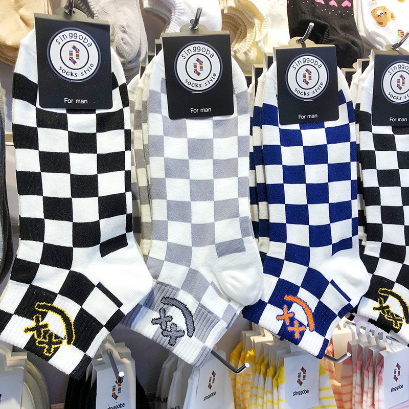 [재고 있음] 한국 양말 싱고바 남성용 영국 스타일 패턴 웃는 얼굴 스포츠 양말 짧은 땀 흡수면 양말