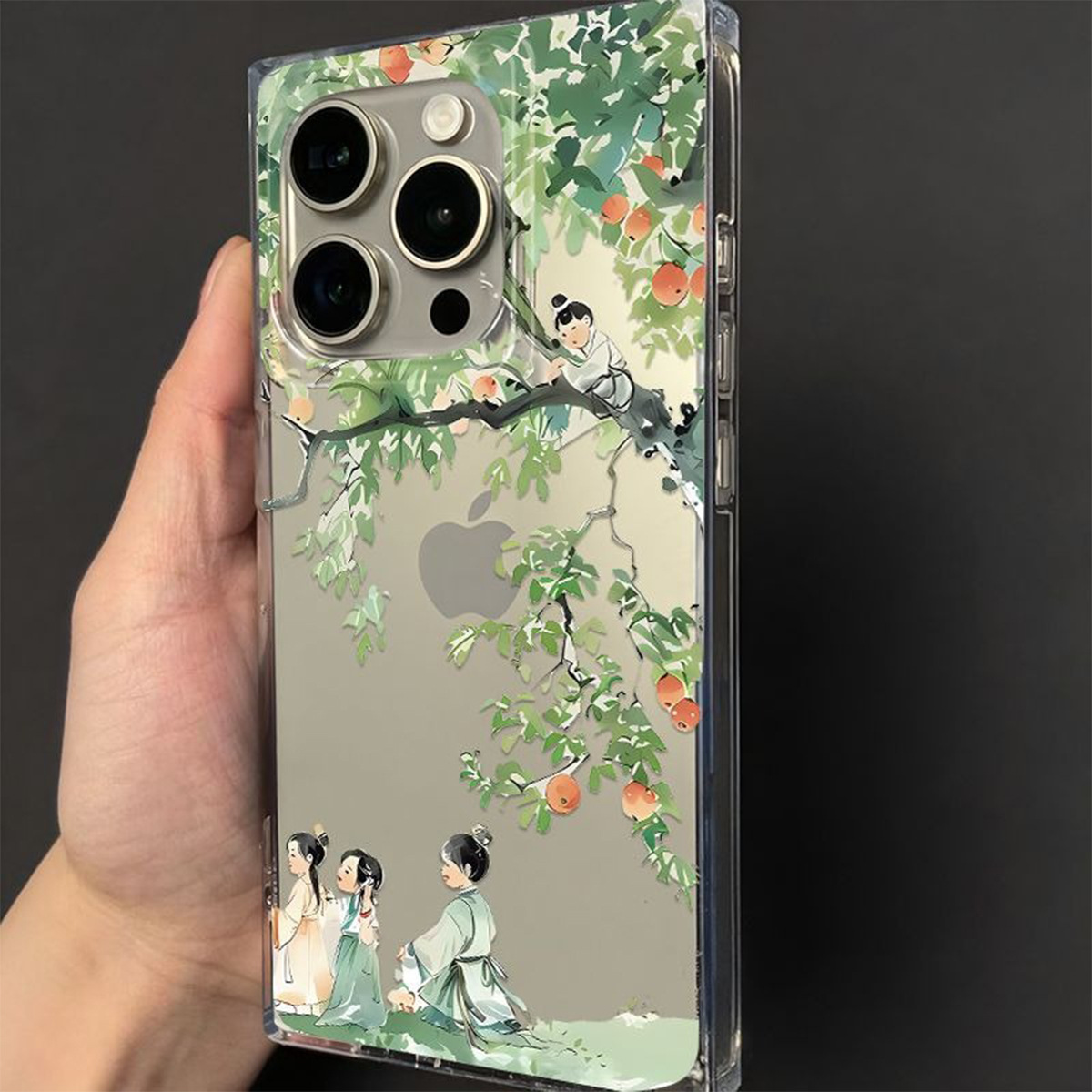 아이스 크리스탈 투명 네 모서리 낙하 방지 휴대폰 케이스 유화 스타일 Apple 휴대폰 보호 커버 고급 냉각 패션 중국 스타일