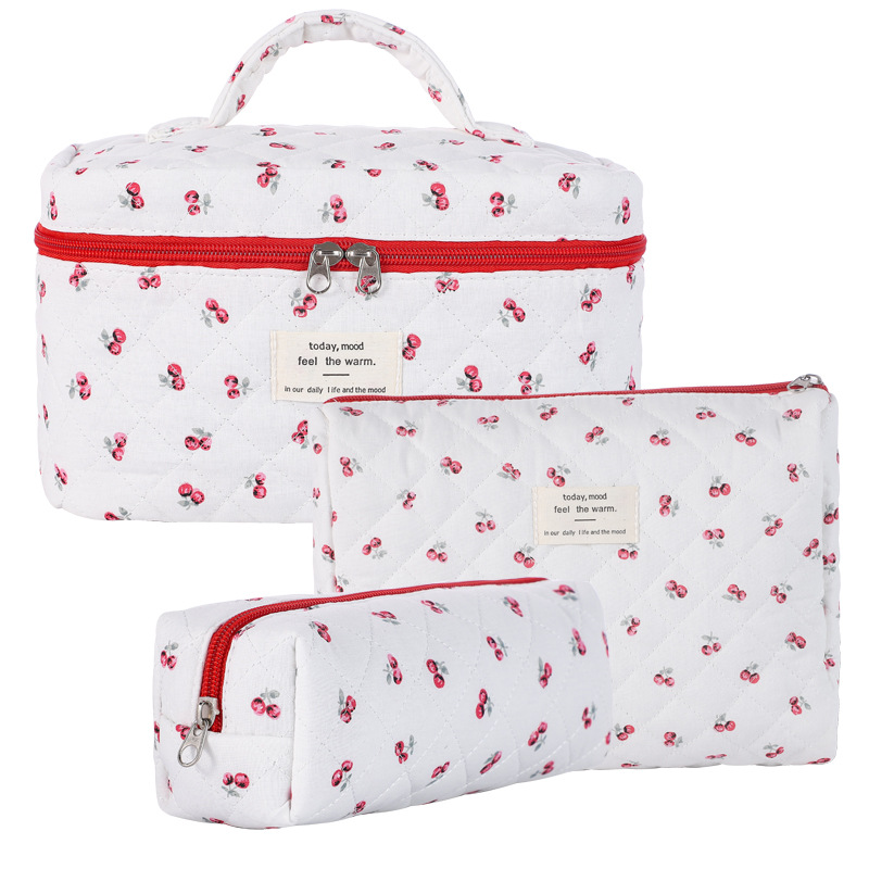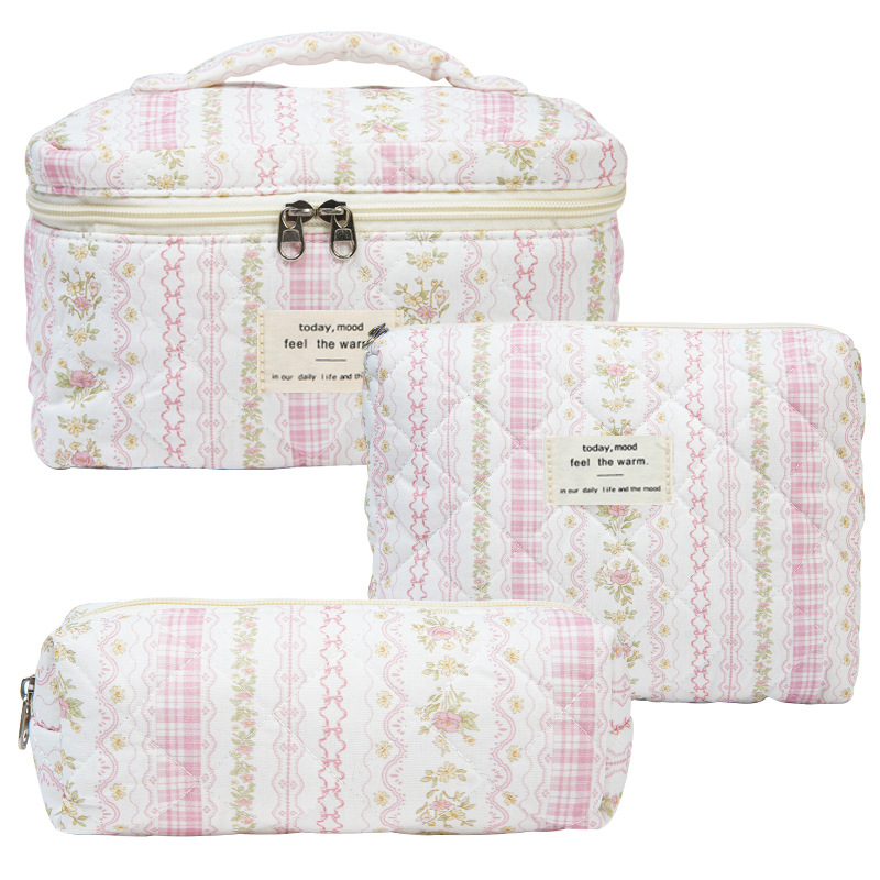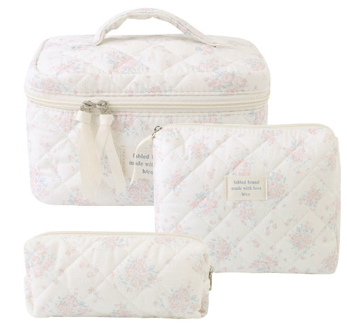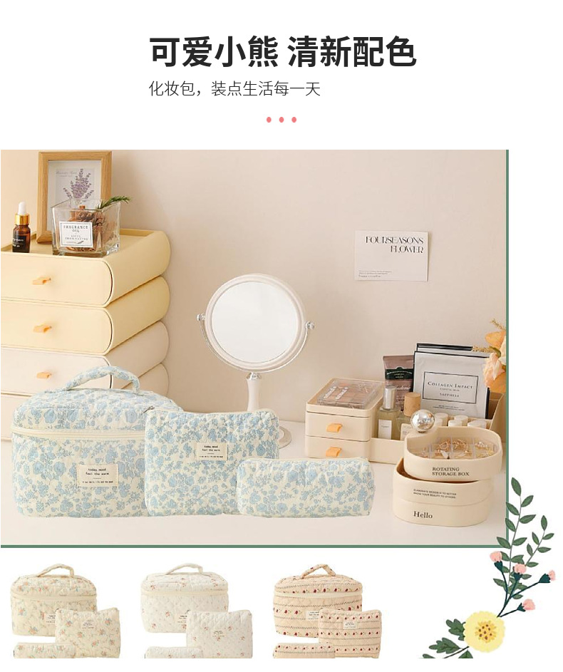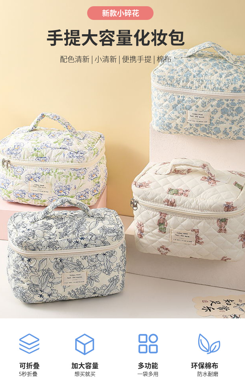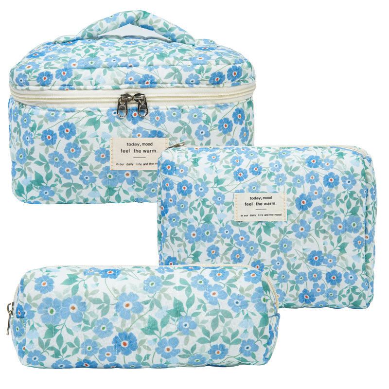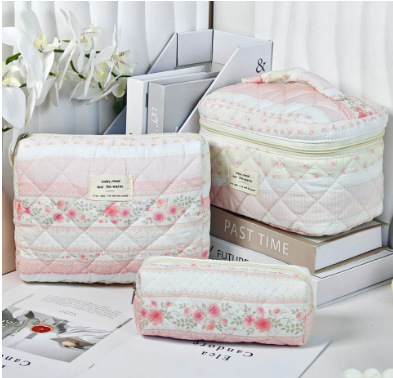 휴대용 화장품 가방 대용량 작은 꽃 저장 휴대용 퀼트 면화 귀여운 꽃 ins 여행 학생