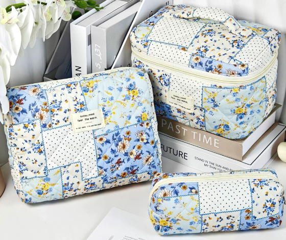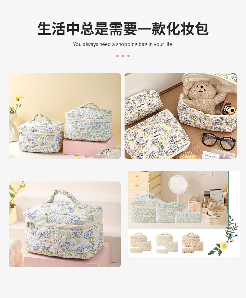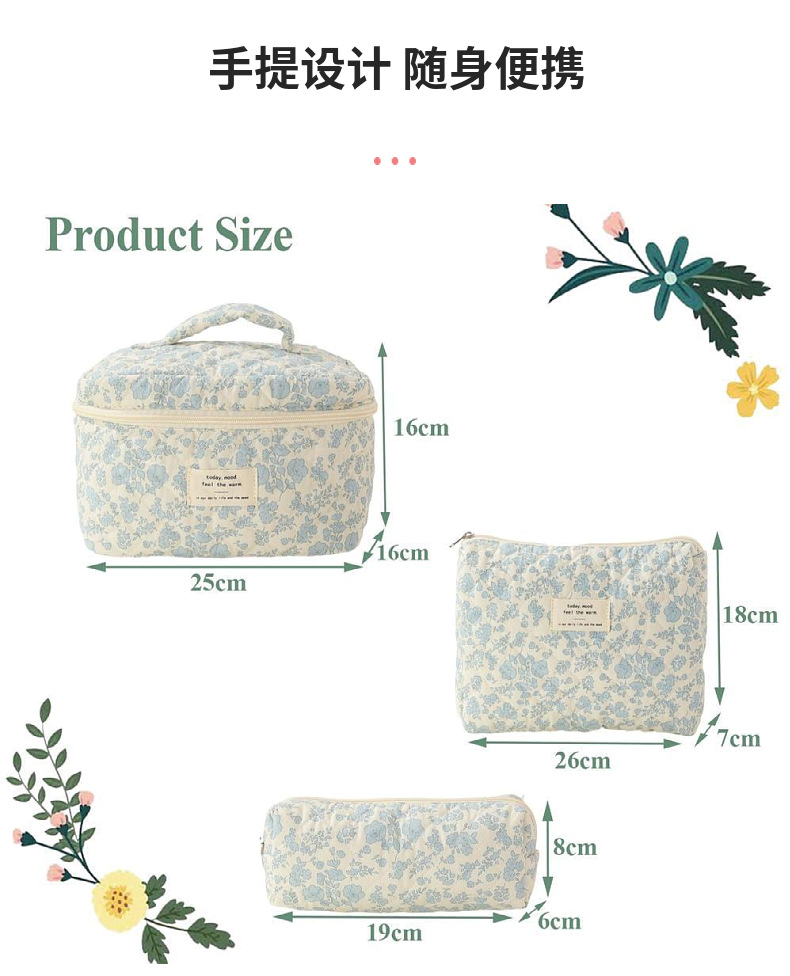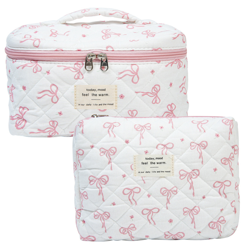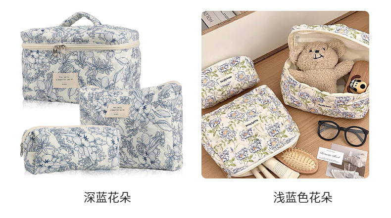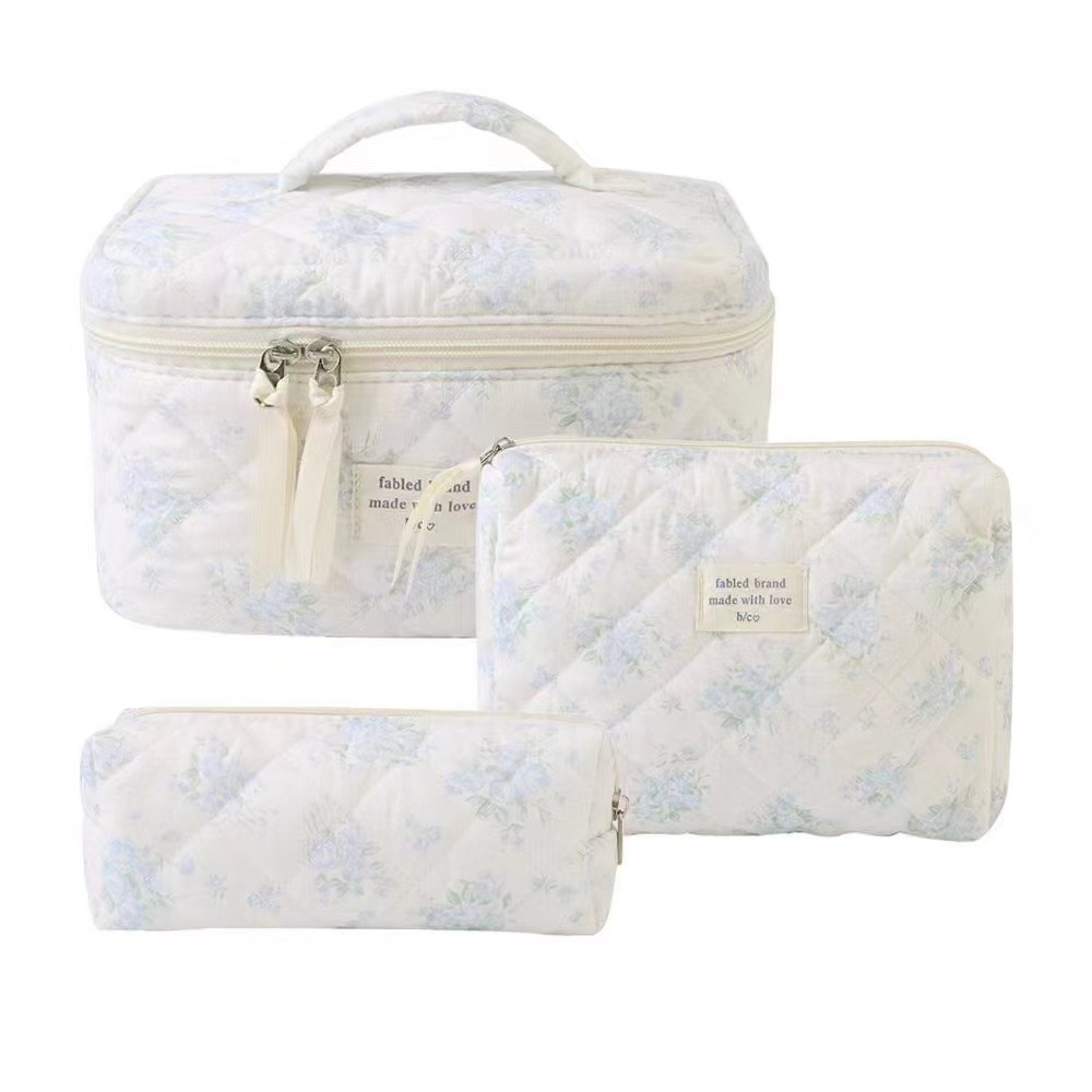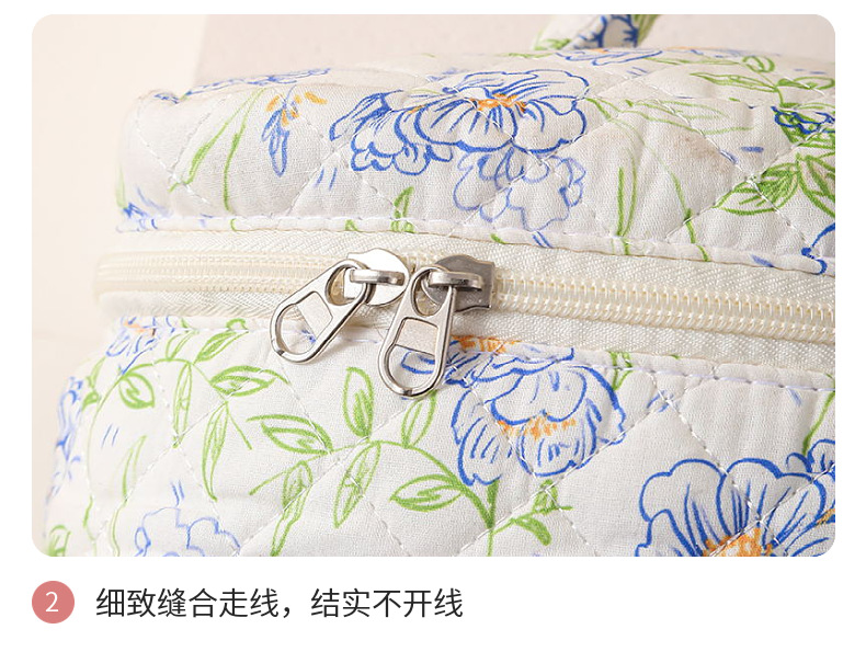 휴대용 화장품 가방 대용량 작은 꽃 저장 휴대용 퀼트 면화 귀여운 꽃 ins 여행 학생