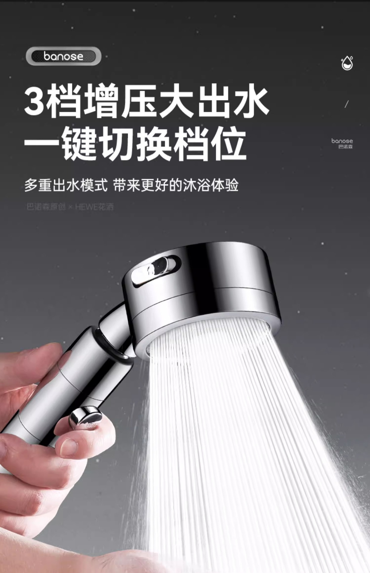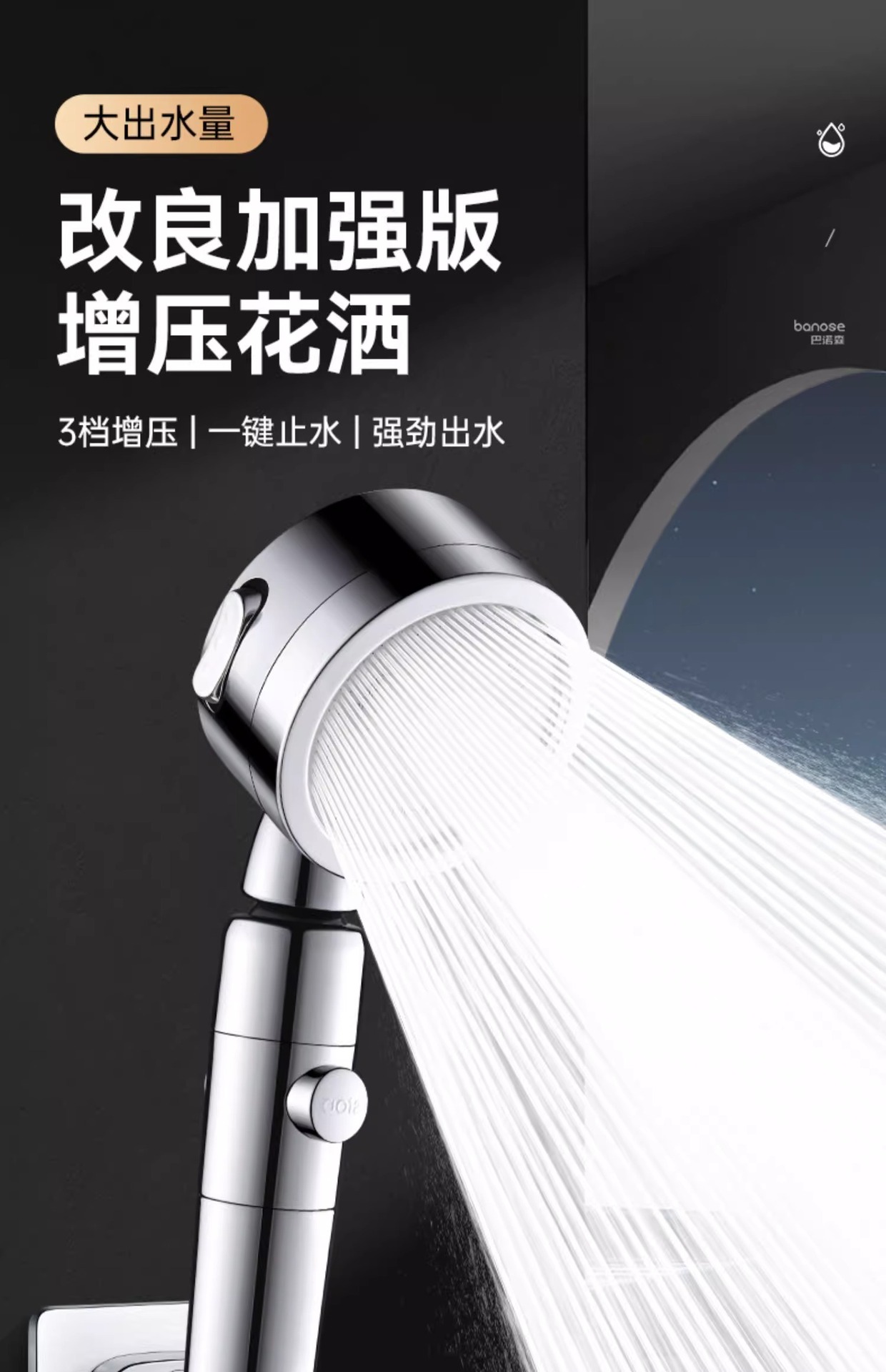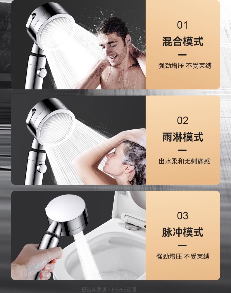 • 독일 슈퍼차저(매직 나이트 블랙) 3단 대용량 샤워기 + 강력한 내하중 브래킷