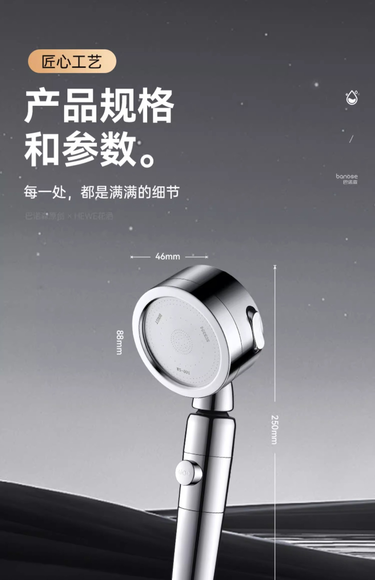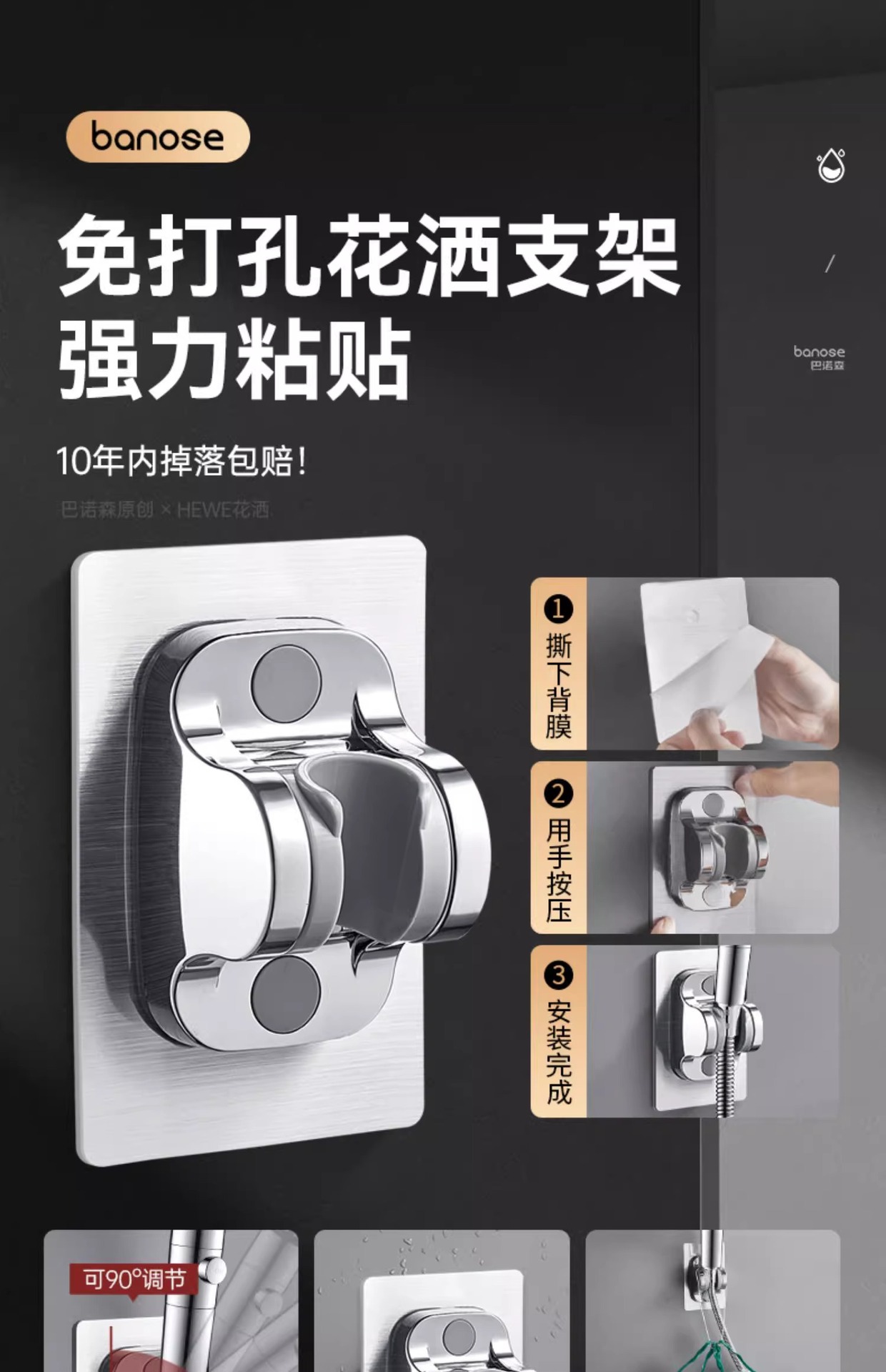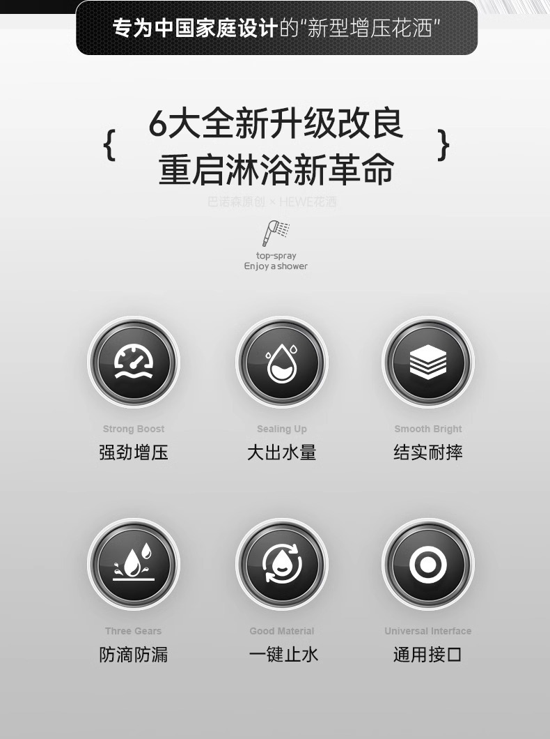 • 독일 슈퍼차저(매직 나이트 블랙) 3단 대용량 샤워기 + 강력한 내하중 브래킷