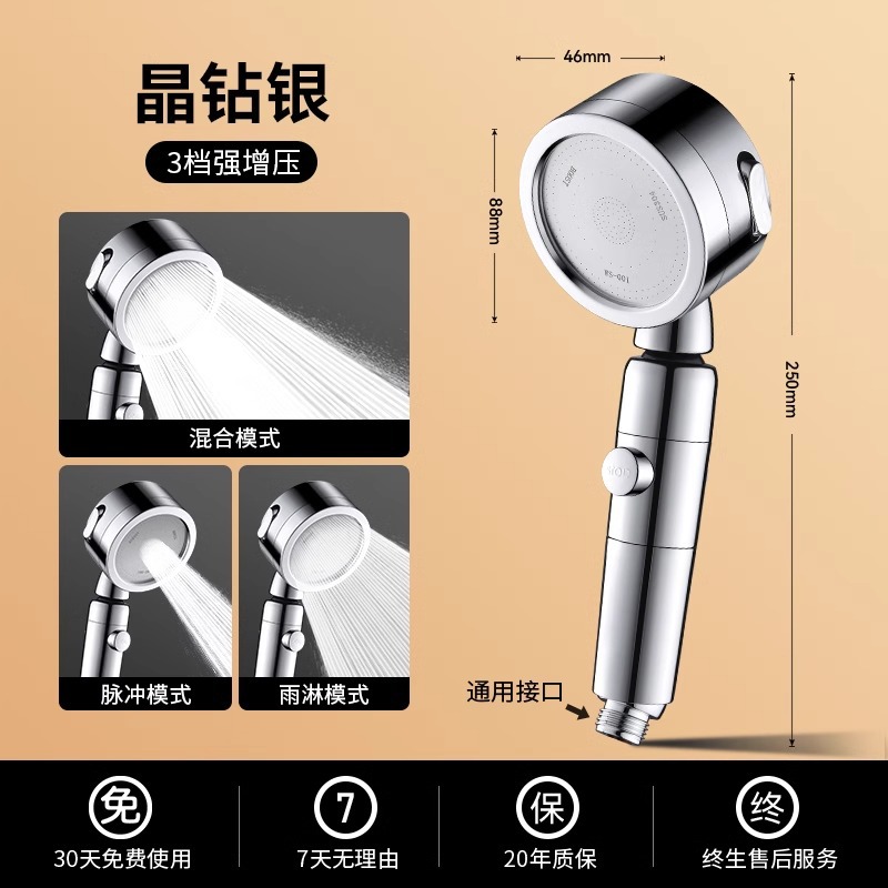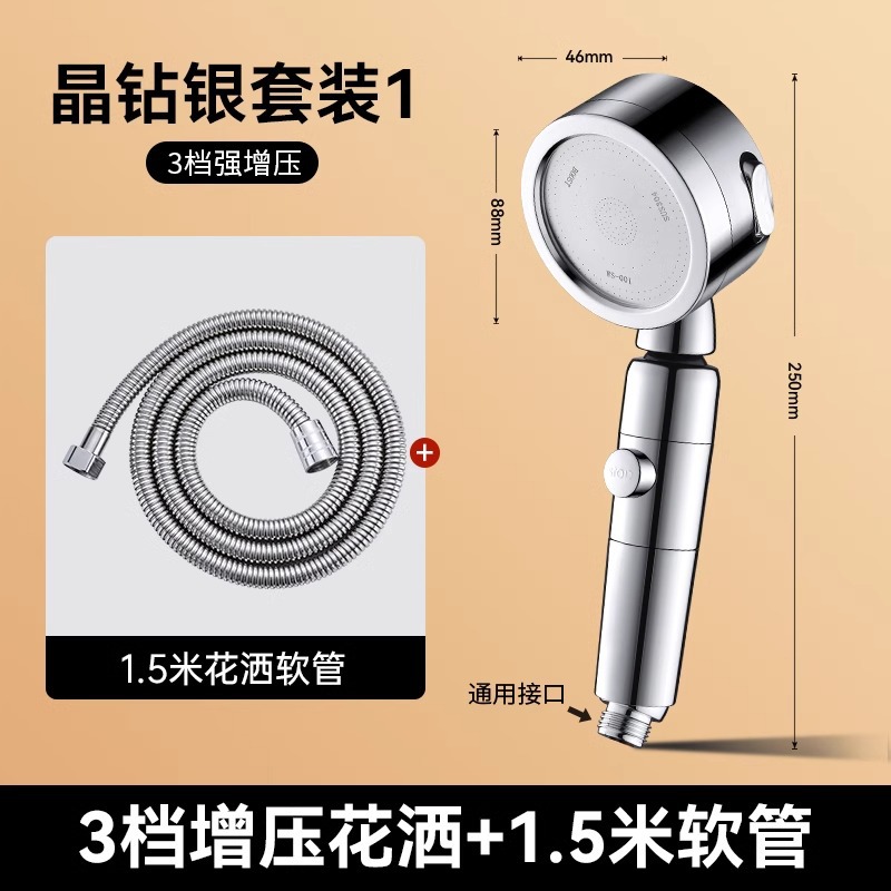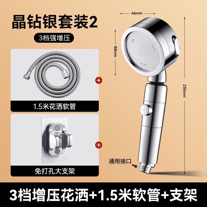 • 독일 슈퍼차저(크리스탈 다이아몬드 실버) 3단 대용량 샤워기 + 대유량 호스 1.5m개 + 강력한 내하중 브래킷
