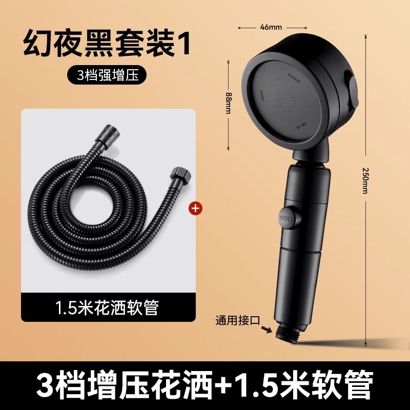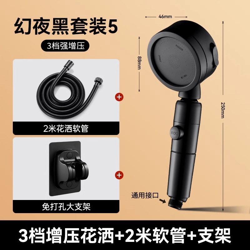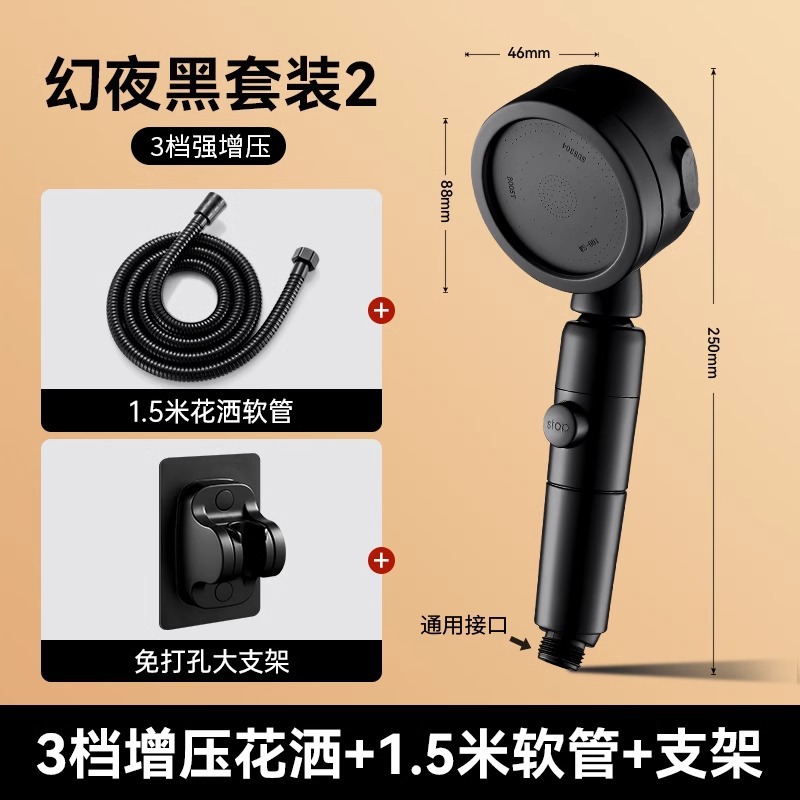 • 독일 슈퍼차저(매직 나이트 블랙) 3단 대용량 샤워기 + 대유량 호스 1.5m개 + 강력한 내하중 브래킷