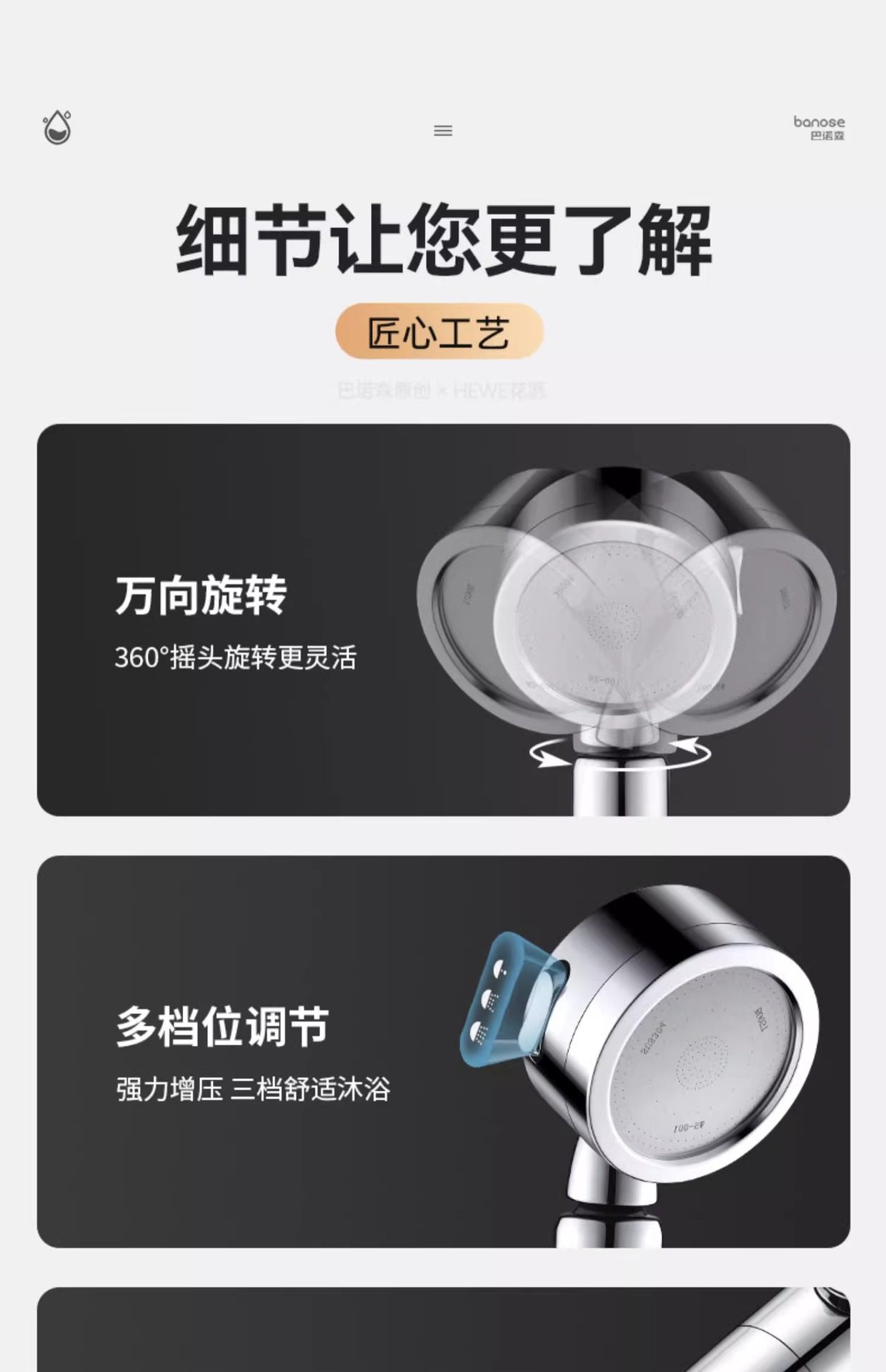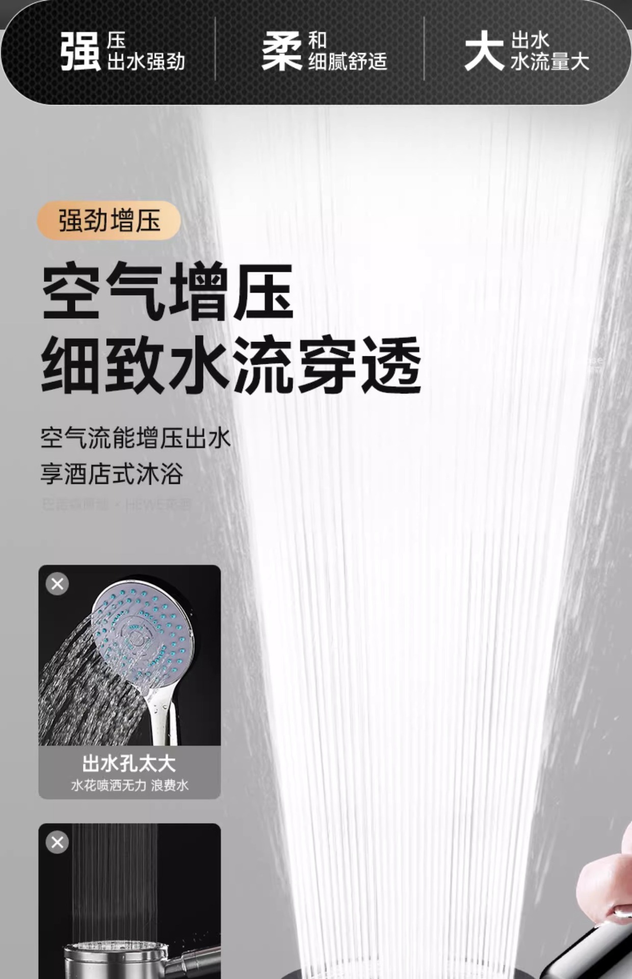 • 독일 슈퍼차저(크리스탈 다이아몬드 실버) 3단 대용량 샤워기 + 강력한 내하중 브래킷