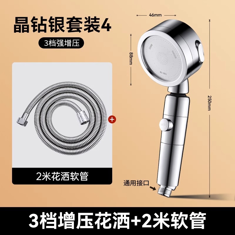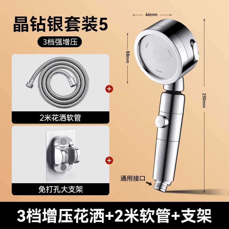 • 독일 슈퍼차저(크리스탈 다이아몬드 실버) 3단 대용량 샤워기 + 대유량 호스 2m개 + 강력한 내하중 브래킷