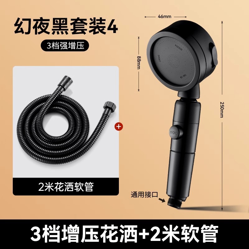 • 독일 슈퍼차저(매직 나이트 블랙) 3단 대용량 샤워기 + 대유량 호스 2m개 + 강력한 내하중 브래킷