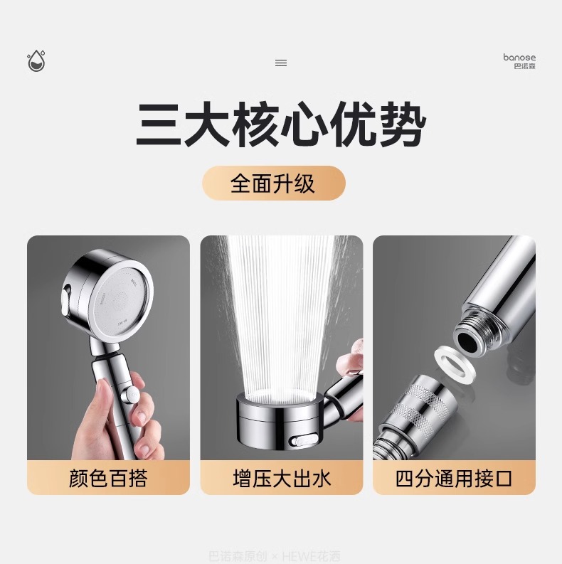 독일 FZY 터보차저 샤워 헤드 가압 대형 물 출력 욕실 샤워 헤드 레인 샤워 헤드 세트스토어 가기