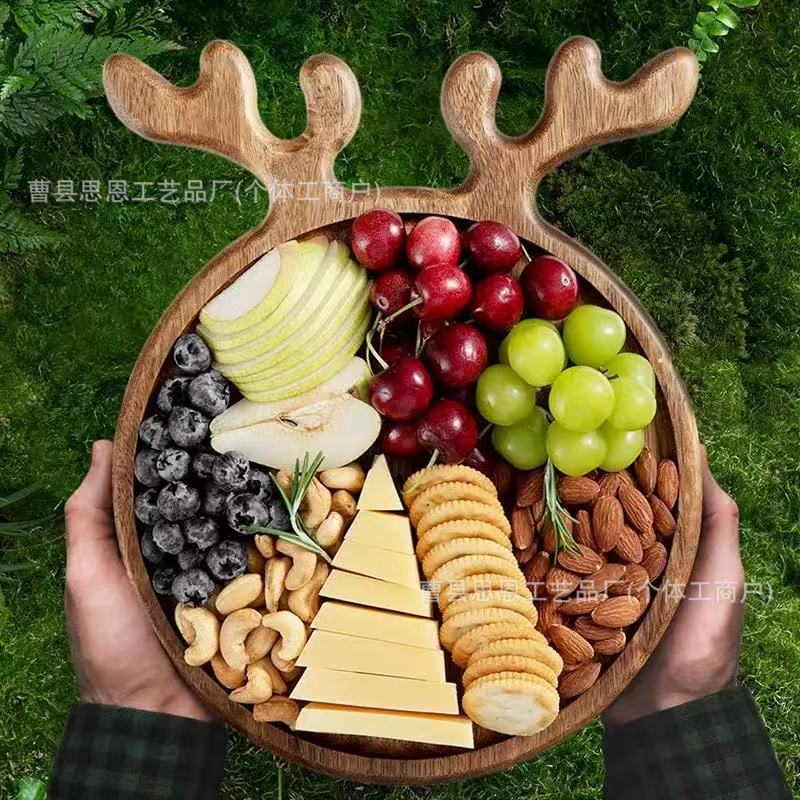 크리스마스 나무 뿔 트레이 홈 단단한 과일 스낵 트레이 호텔 레스토랑 나무 고기 트레이