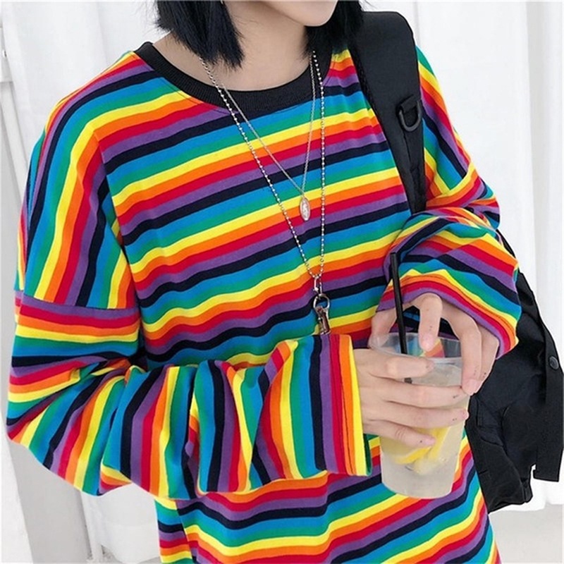 다재다능한 레인보우 스트라이프 캐주얼 니트 여성용 다재다능한 레인보우 스트라이프 캐주얼 니트웨어스토어 가기