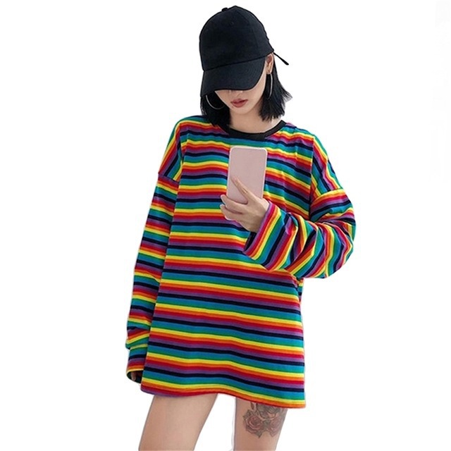 다재다능한 레인보우 스트라이프 캐주얼 니트 여성용 다재다능한 레인보우 스트라이프 캐주얼 니트웨어