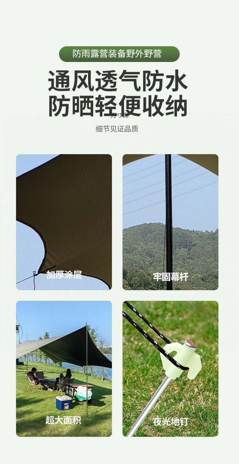 야외 비닐 캐노피 팔각형 나비 자외선 차단제 차양 커버 실버 코팅 캠핑 텐트 공장 공급망 도매스토어 가기