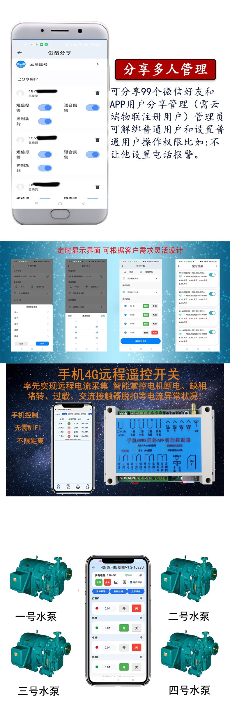 휴대 전화 원격 제어 4 방향 스위치 4G 무선 원격 제어 모터 워터 펌프 조명 시스템 IoT 220V/380V스토어 가기