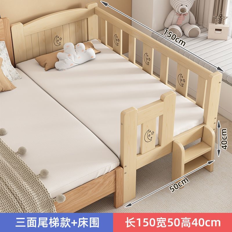 어린이 침대 단단한 나무 아기 접합 대형 침대 소년 싱글 침대 옆 침대 가드 레일이있는 작은 침대 소녀 공주 침대