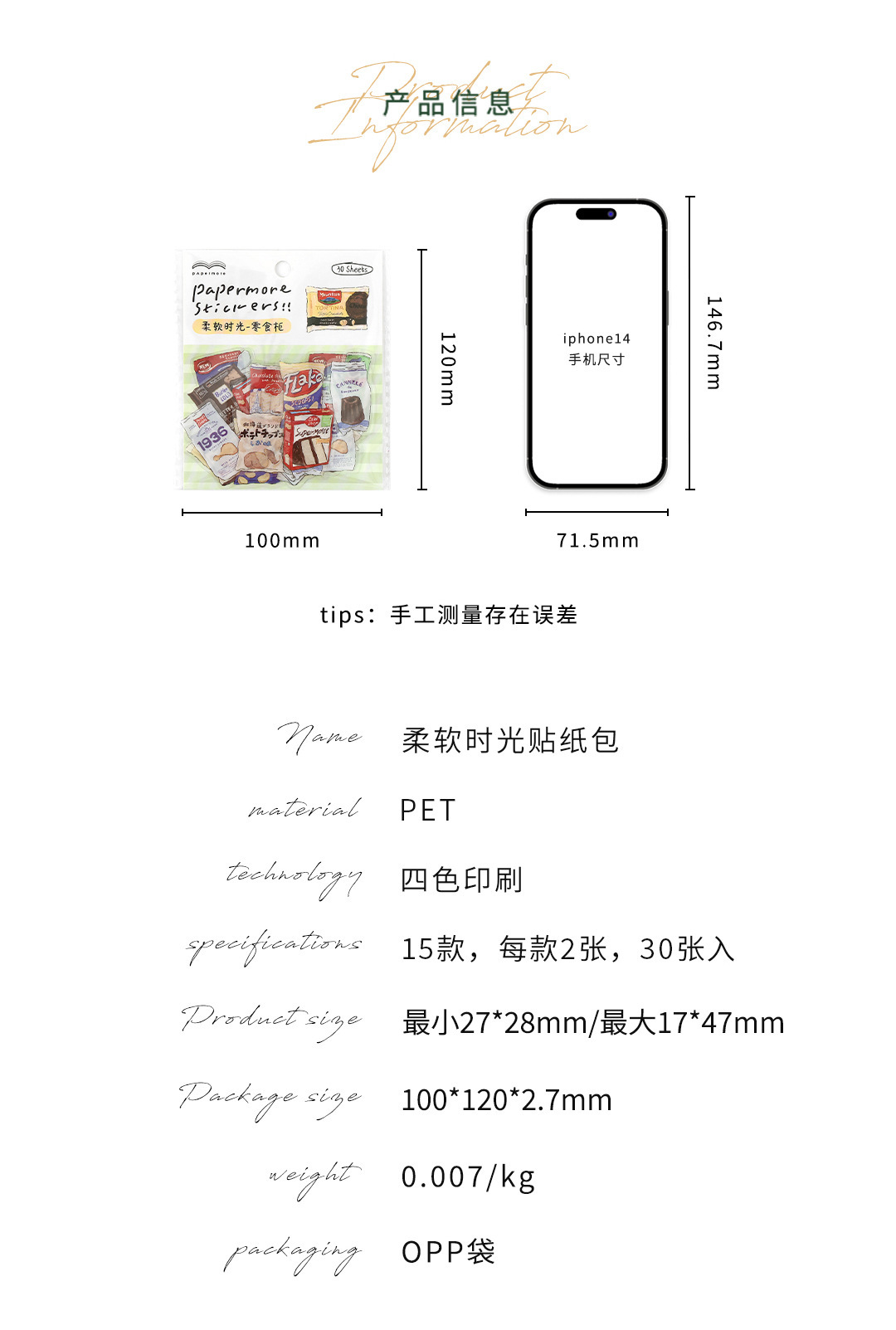 PaperMorePET 스티커 팩 소프트 타임 시리즈 다목적 소재 DIY 핸드북 휴대 전화 케이스 장식 콜라주스토어 가기