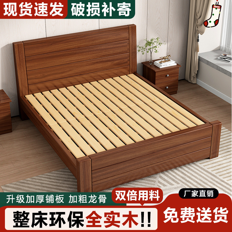 경제적인 새로운 중국 스타일의 단단한 나무 침대 1.5m 더블 침대 1.8m 두꺼운 싱글 침대 1m 침대 프레임 작은 아파트를 위한 클리어런스스토어 가기