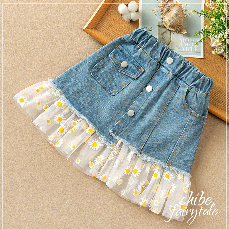 여자 데님 스커트 여름 드레스 2025 새로운 어린이 스커트 데이지 메쉬 스커트 여름 여자 데님 스커트