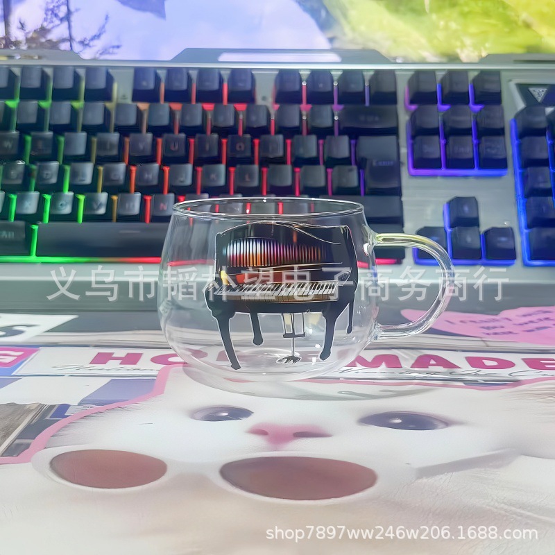 국경을 넘는 새로운 피아노 컵 피아노 컵 크리 에이 티브 투명 유리 컵스토어 가기