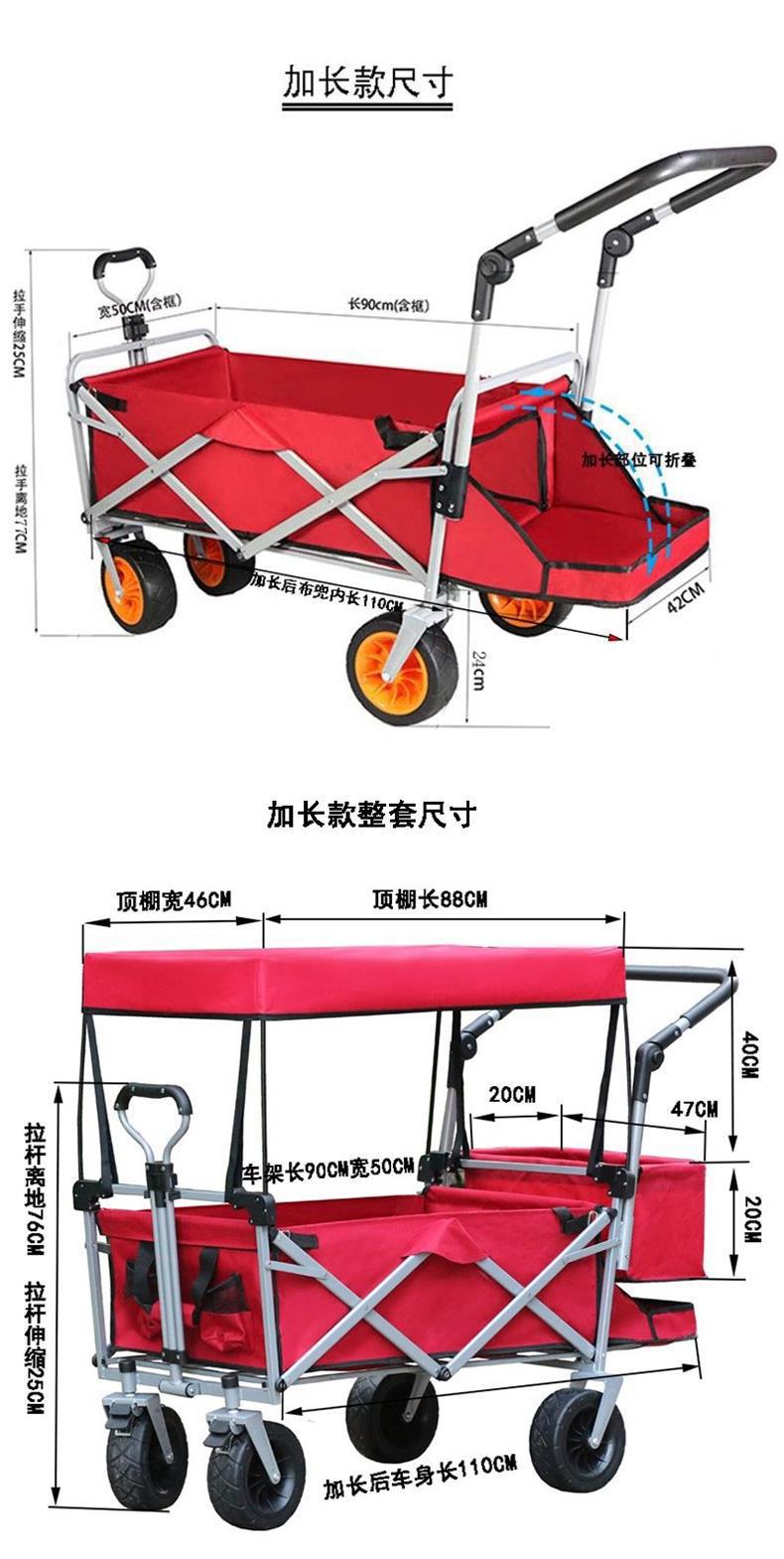 야외 캠핑카, 푸시풀 겸용 접이식 트롤리, 캠핑 피크닉 소형 트레일러, 확장형, 리클라이닝, 가정용 화물 운반