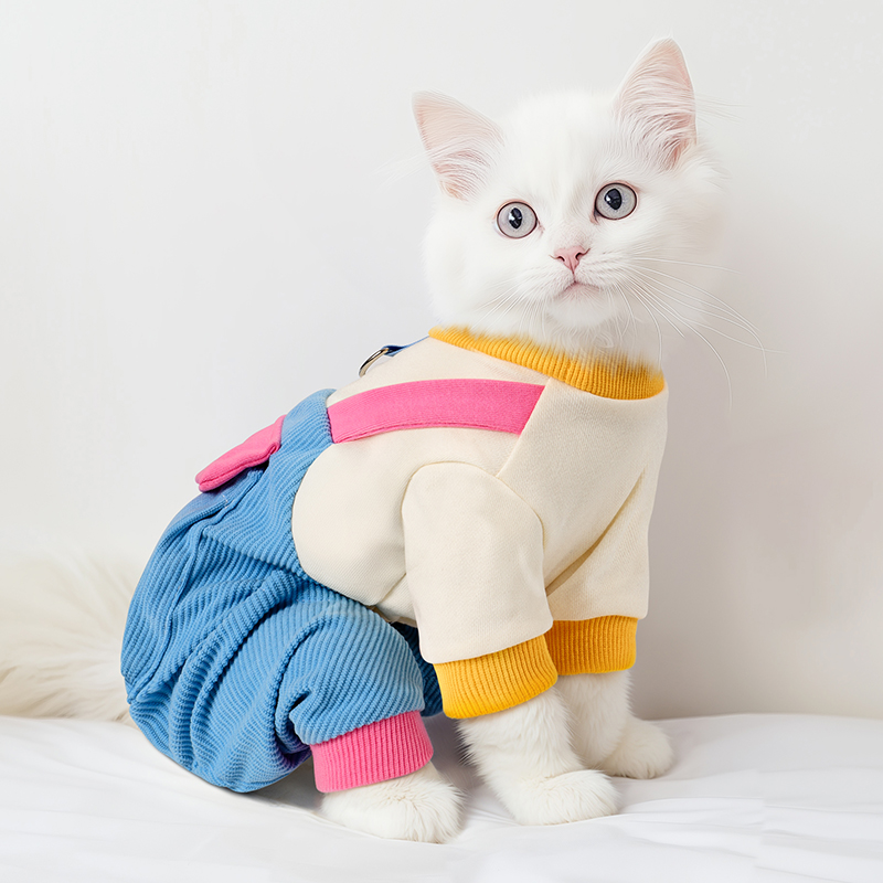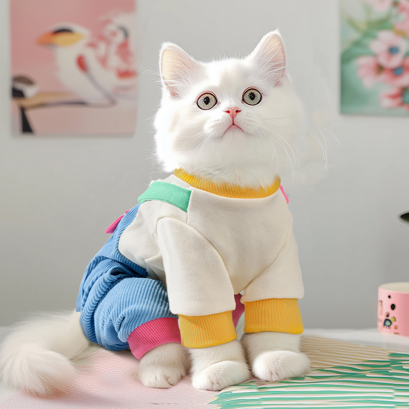 새끼 고양이 옷 봄과 가을 배꼽 보호 2025 새로운 4발 작업복 애완 동물 데본 래그돌 실버 그라데이션 탈모 방지스토어 가기