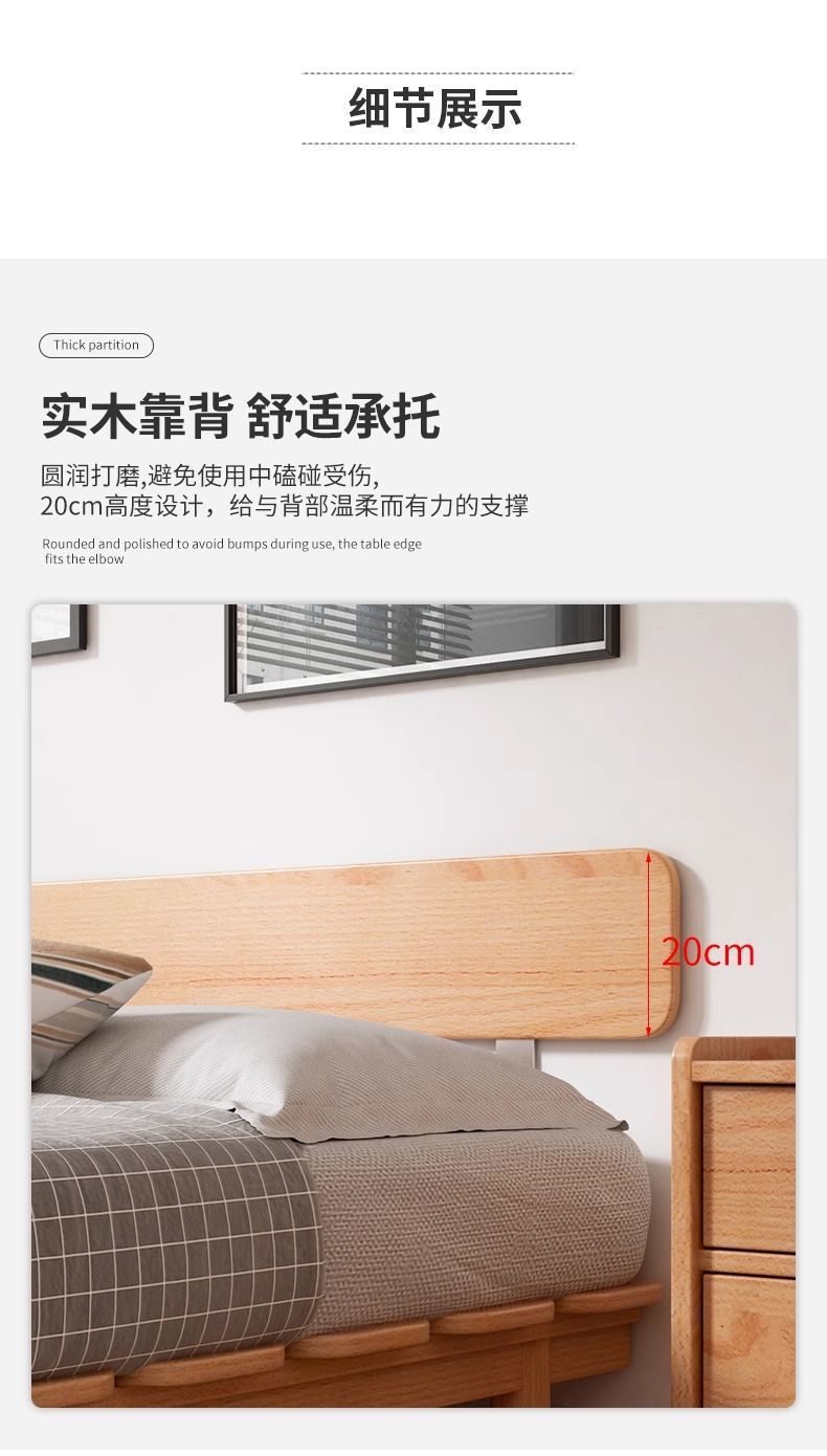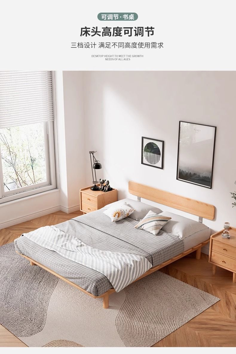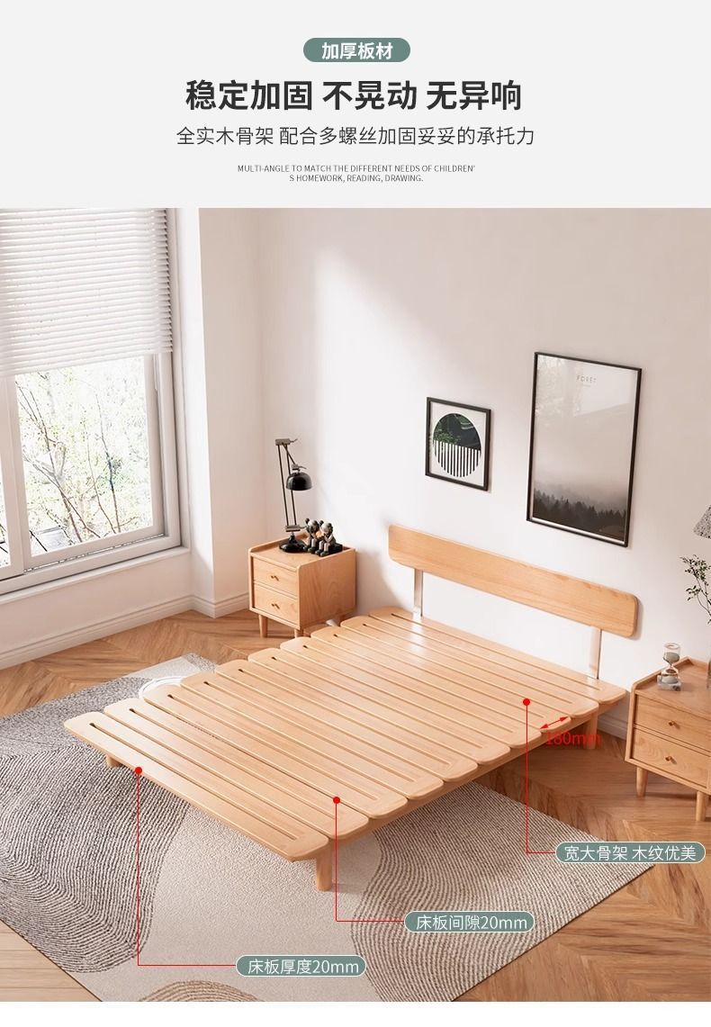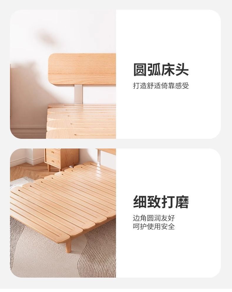 원목 침대, 모던하고 심플한 너도밤나무 싱글 침대, 일본식 소형 공간 절약형 마스터 침실 침대, 더블 침대 프레임 조합스토어 가기