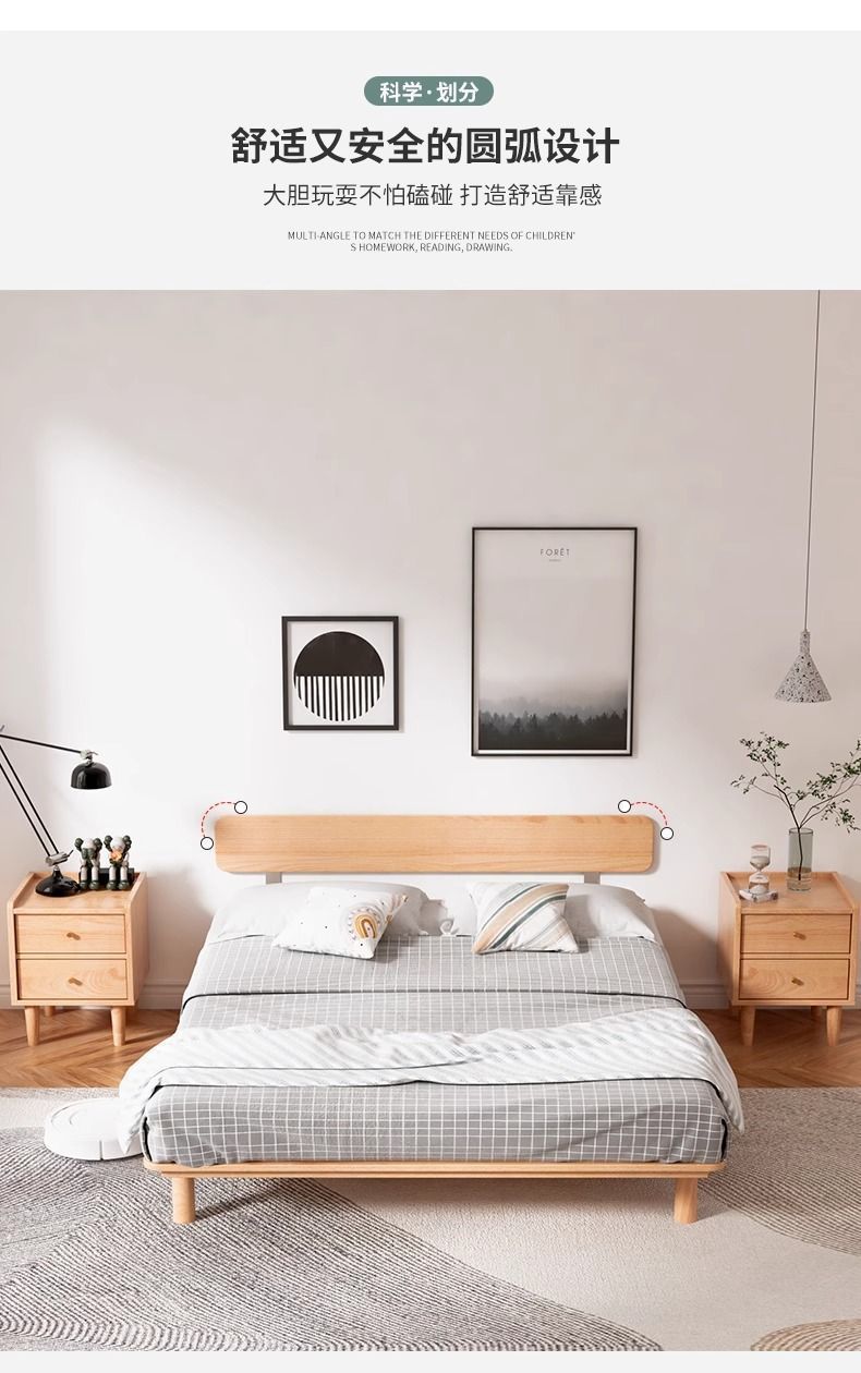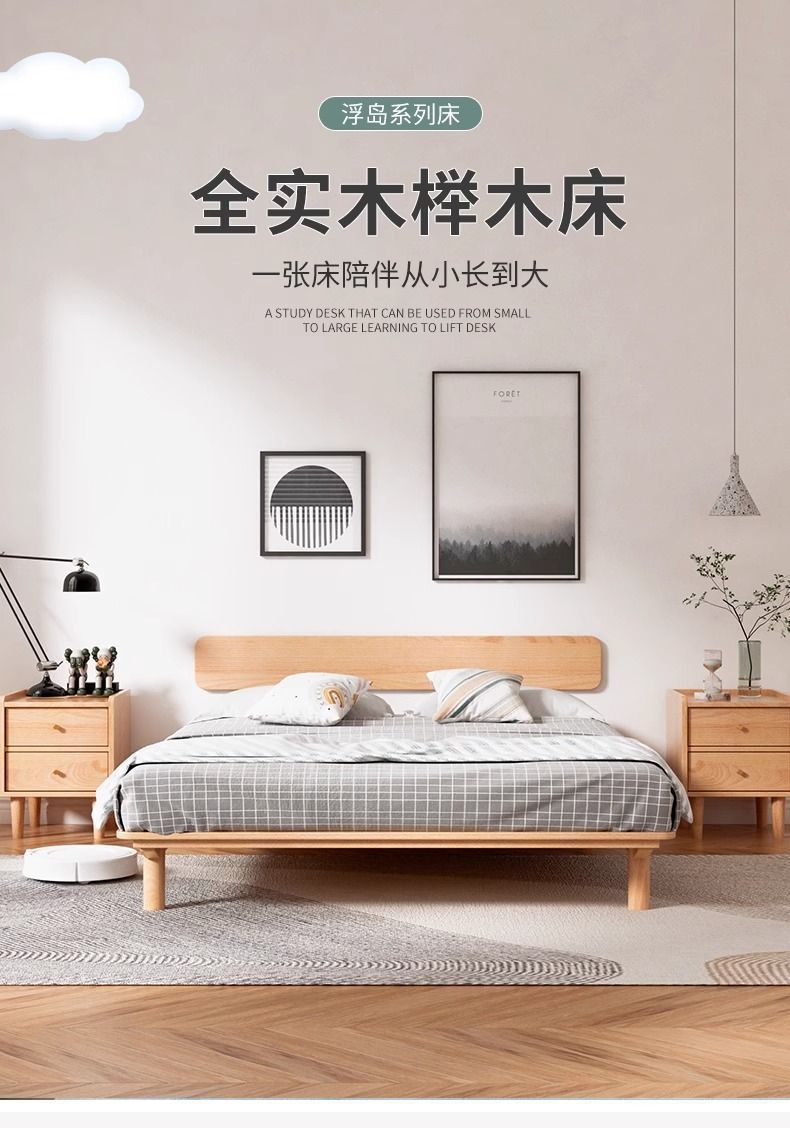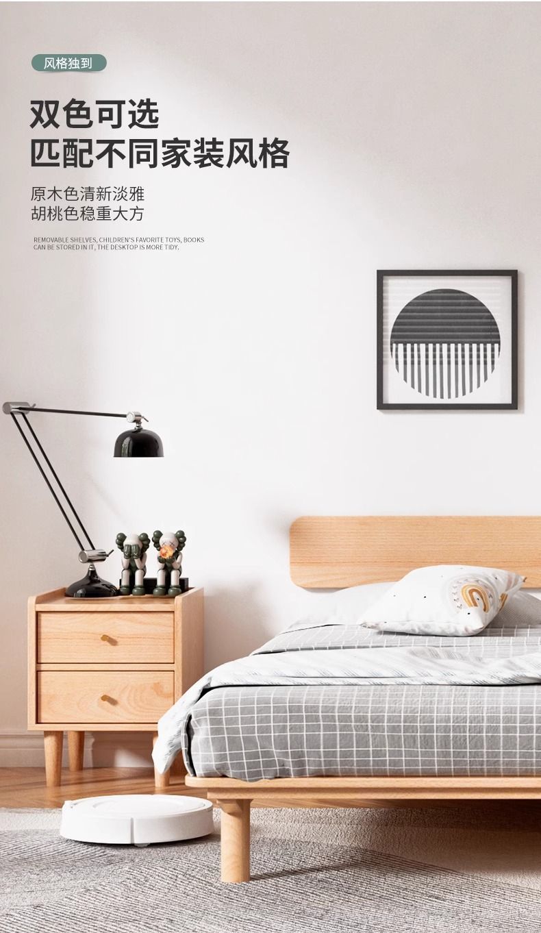 원목 침대, 모던하고 심플한 너도밤나무 싱글 침대, 일본식 소형 공간 절약형 마스터 침실 침대, 더블 침대 프레임 조합스토어 가기
